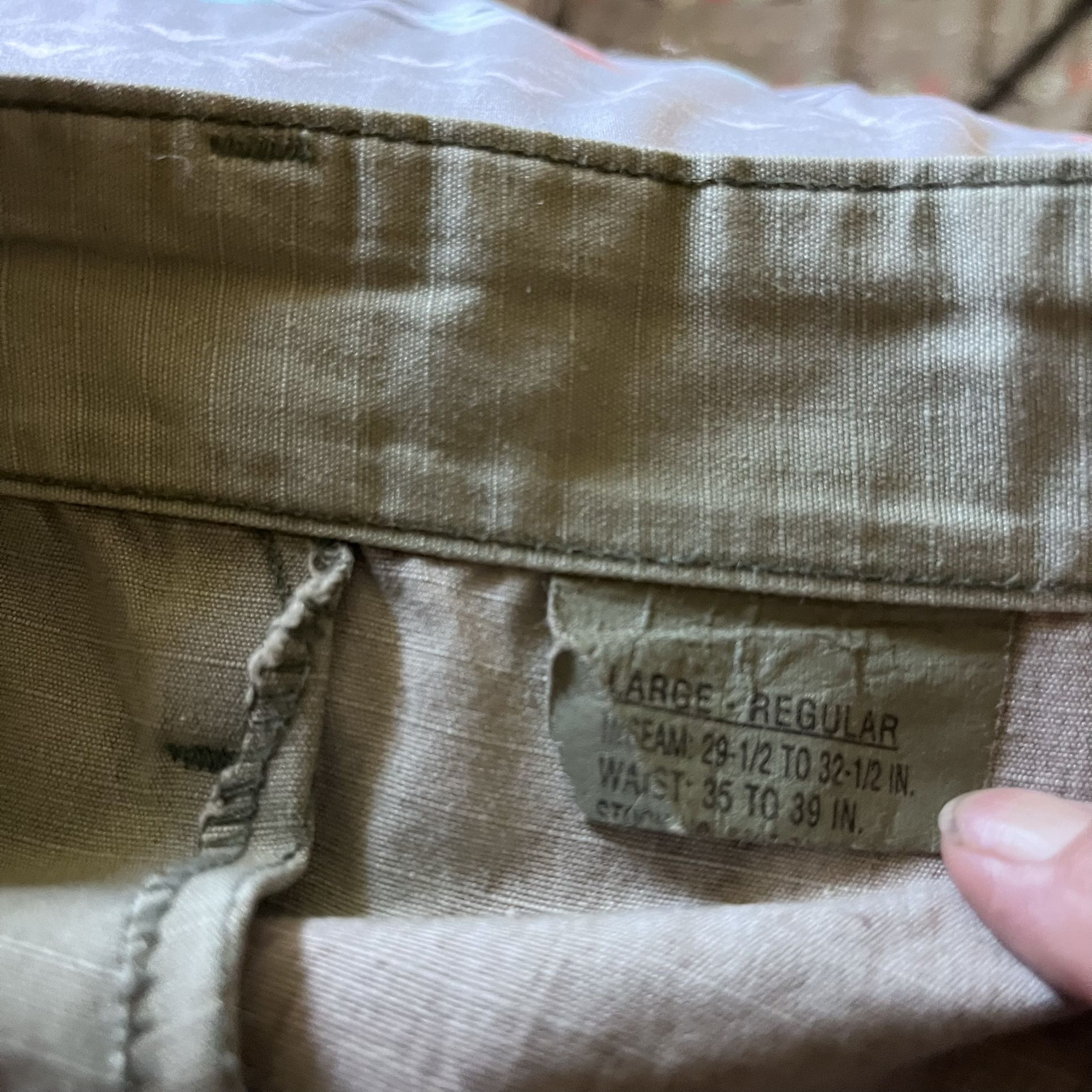 Have these Original Camouflage Army Cargo pants. adjustables waist size from 35-39 inseam 29 1/2- 32 1/2 from 1990 very thick material special material to control the heat on line these pant are 95.00 I’m asking 50.00 firm.