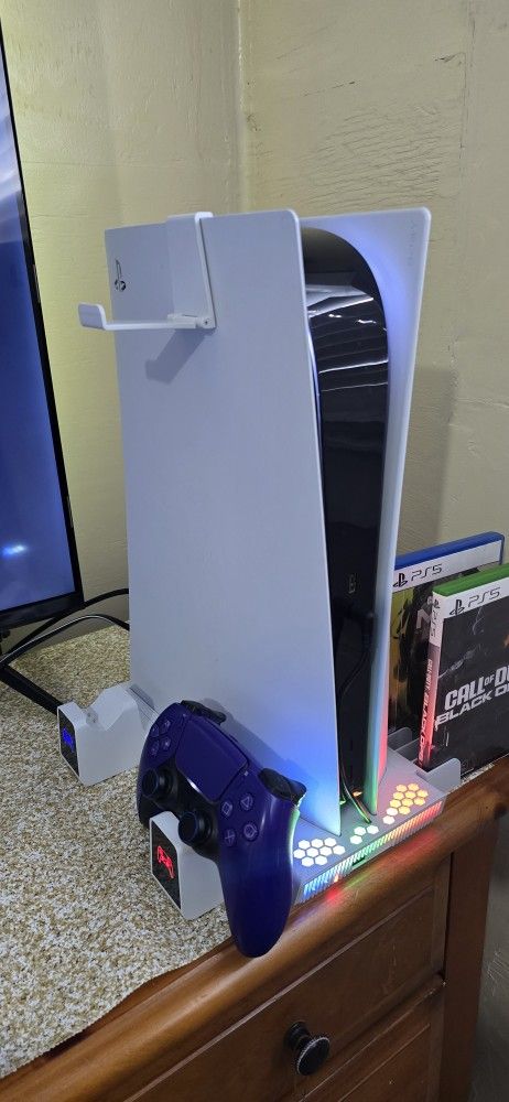 I sell PS5 as a new super super care sole owner. It includes: *Control Power and HDMI cable *Energy base with adjustable speed and lights. RGB *Hearing aid support, Call of Duty Black Ops 6 Call of Duty Modern Warfare II. M Vendo PS5 como nuevo súper cuidado único dueño. Incluye: *Control * Cable alimentación y HDMI *Base de encriamiento con velocidad regulable y luces. RGB *Soporte para audífonos, * Call of Duty black Ops 6 * Call of Duty Modern Warfare II.