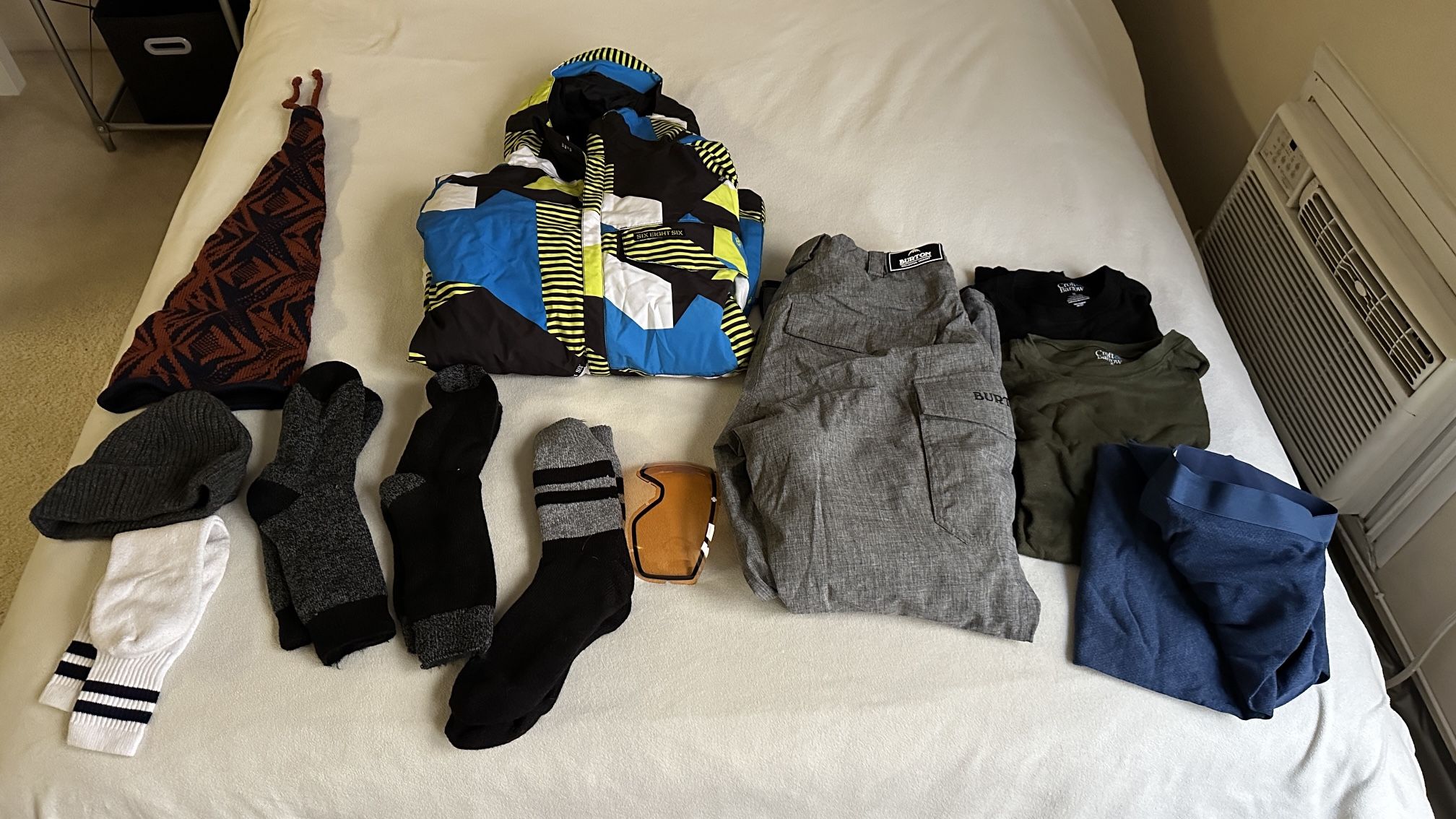 12 pieces snowboarding set 1 Burton Pants 1 Croft & Barrow warm pants 2 Croft & Barrow warm long sleeves t-shirts 1 686 snow jacket 1 goggles orange screen 4 long warm socks 2 beanies Selling in bulk Used twice 1 year ago when I tried snowboarding. Not something I would do again. Please contact me only if interested.