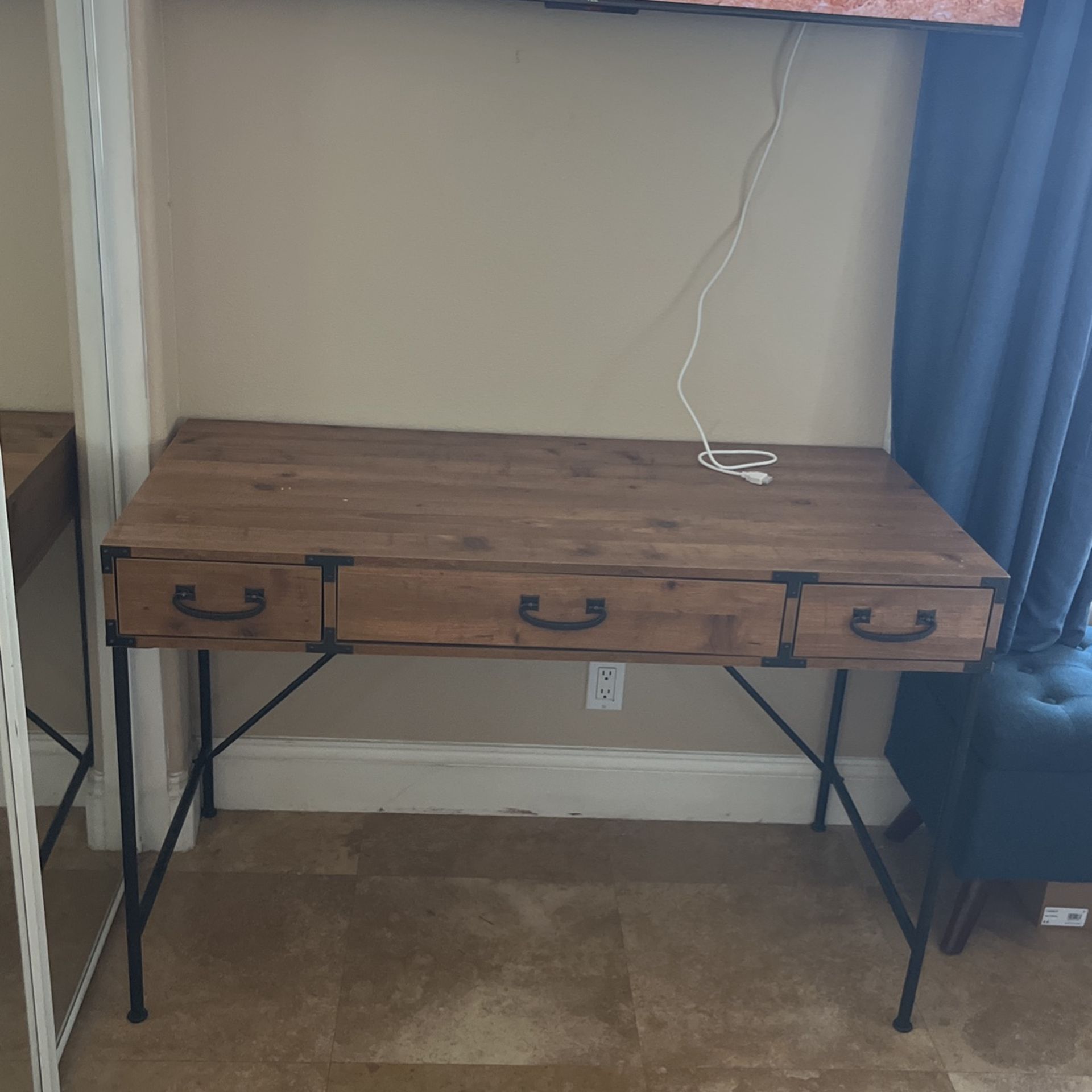 Three Drawer Desk With Metal Legs
