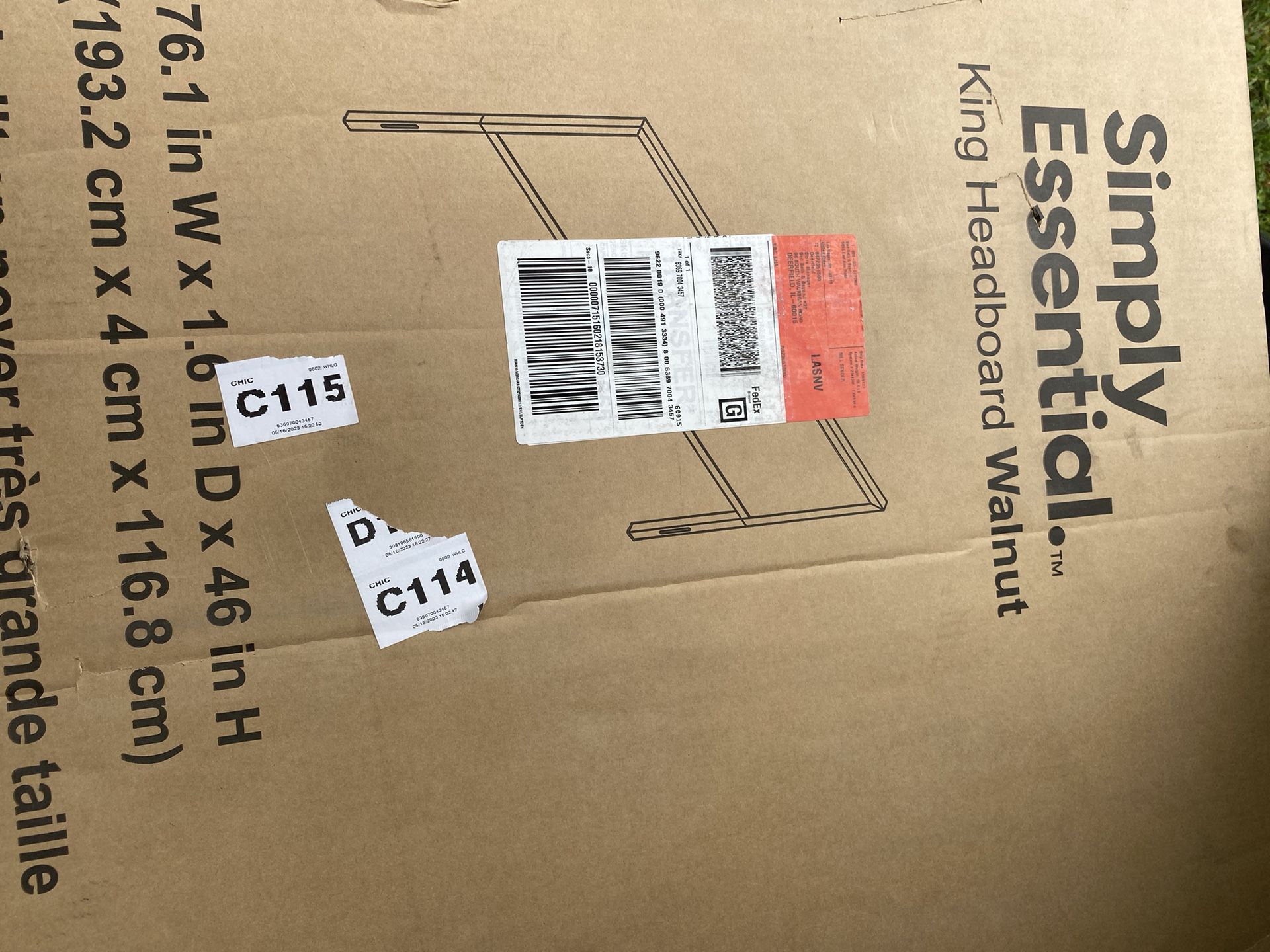 Simply essential headboard in walnut with a steel frame. Brand new never opened. Fits standard king sized beds. In store price $150 before tax.