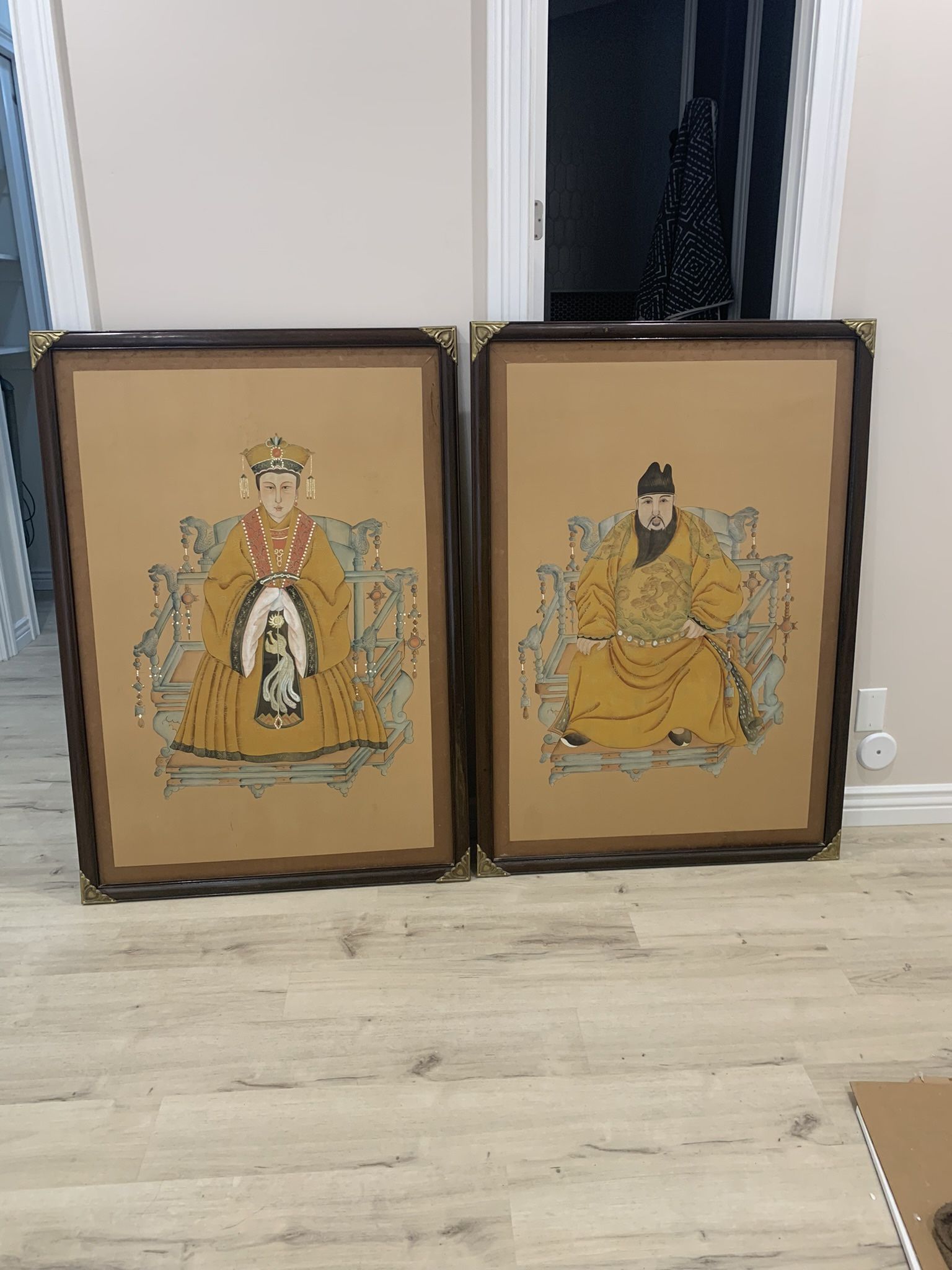 Emperor and Empress, very bright color and details. Art, Asian, portraits.