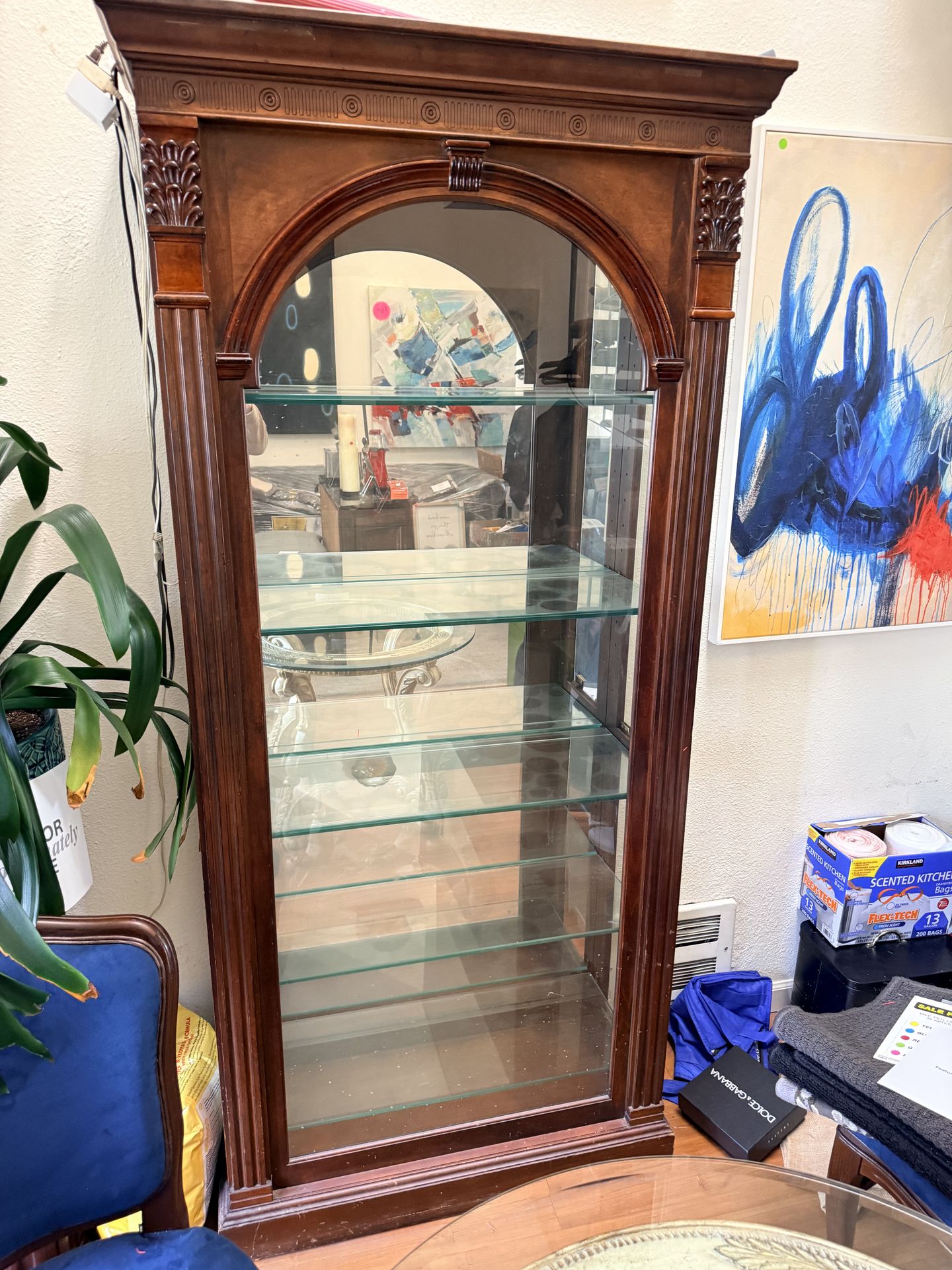 Beautiful Cherrywood display cabinet Featuring four doors, two on each side. 8 glass shelves that are adjustable. 34 inches wide 80 inches tall $125 OBO