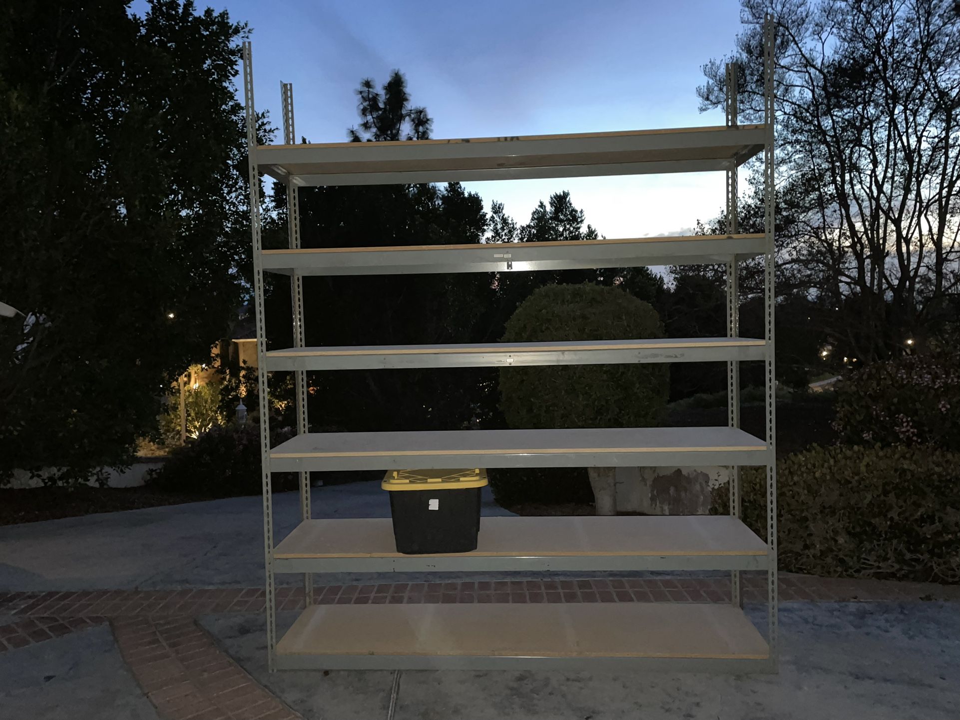 Shelving Units - Only Four Units Remaining. 10 foot height, 120 inches 8 foot wide, 96 inches 2 foot depth, 24 inches 6 tiers Boltless units Riveter is the brand. Heavy Duty - They hold a lot of weight. Over 700 lbs per level. They are in great condition, look new. $250 each or $730 for three.