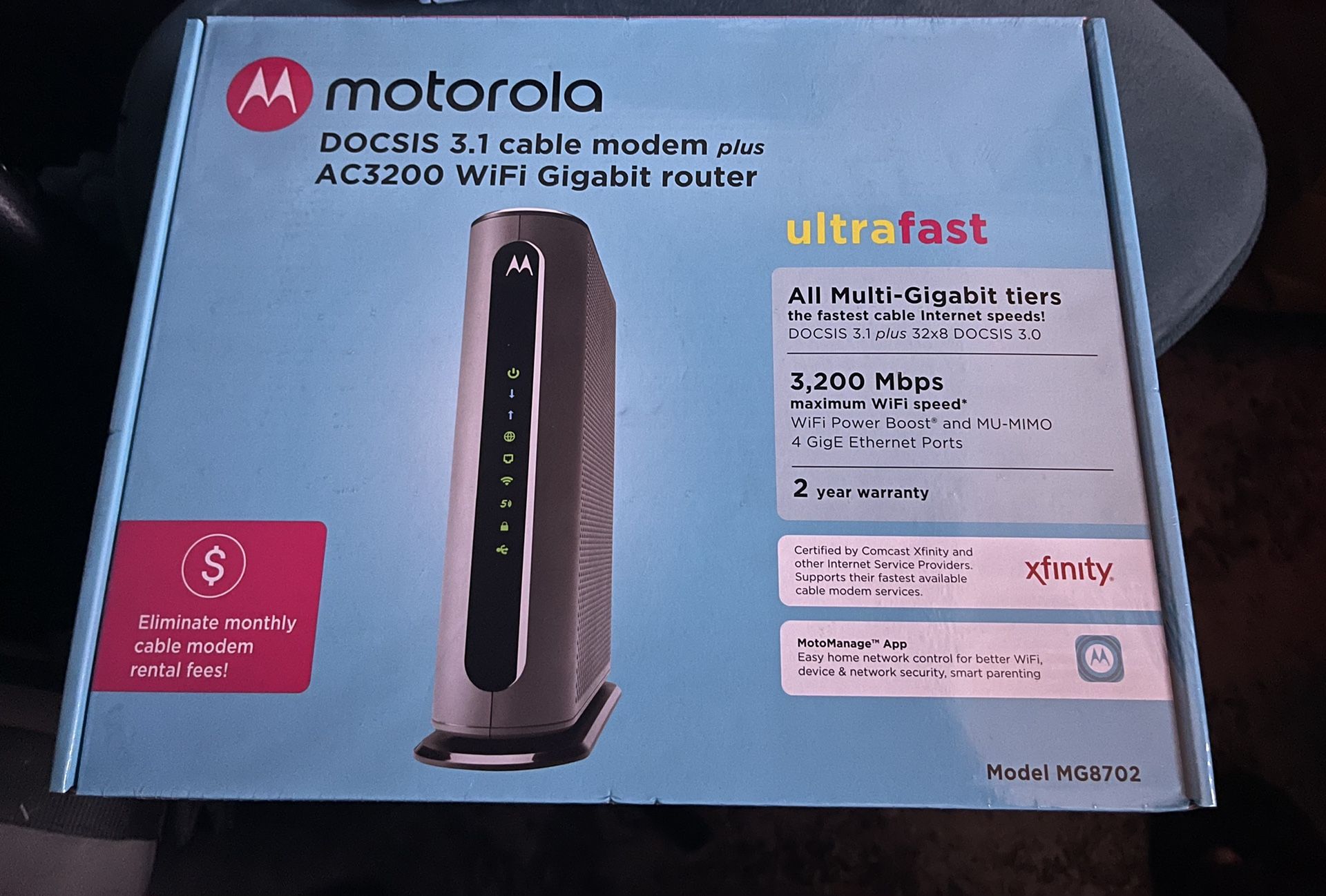 Brand new Motorola MB8600, one of the best replacements to your existing Comcast rental equipment. But much faster and more reliable !!! Paid 300 for it - save some cash - get it from me.