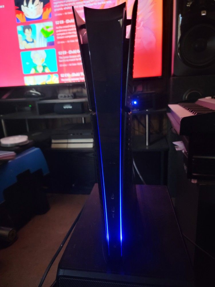 Playstation 5 slim model with black low profile stealth plates v2. Has cutouts with wire mesh to keep the system cool and clean. Open to trade for Xbox series X (Has 12.40 firmware if you're looking for future homebrew)