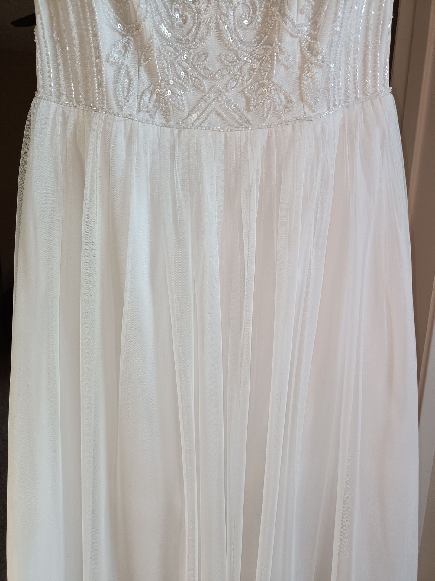 Adrianna Papell White bead embroidered dress Size 8 Ivory pleated floor length maxi Condition is used in excellent condition Don't miss this chance