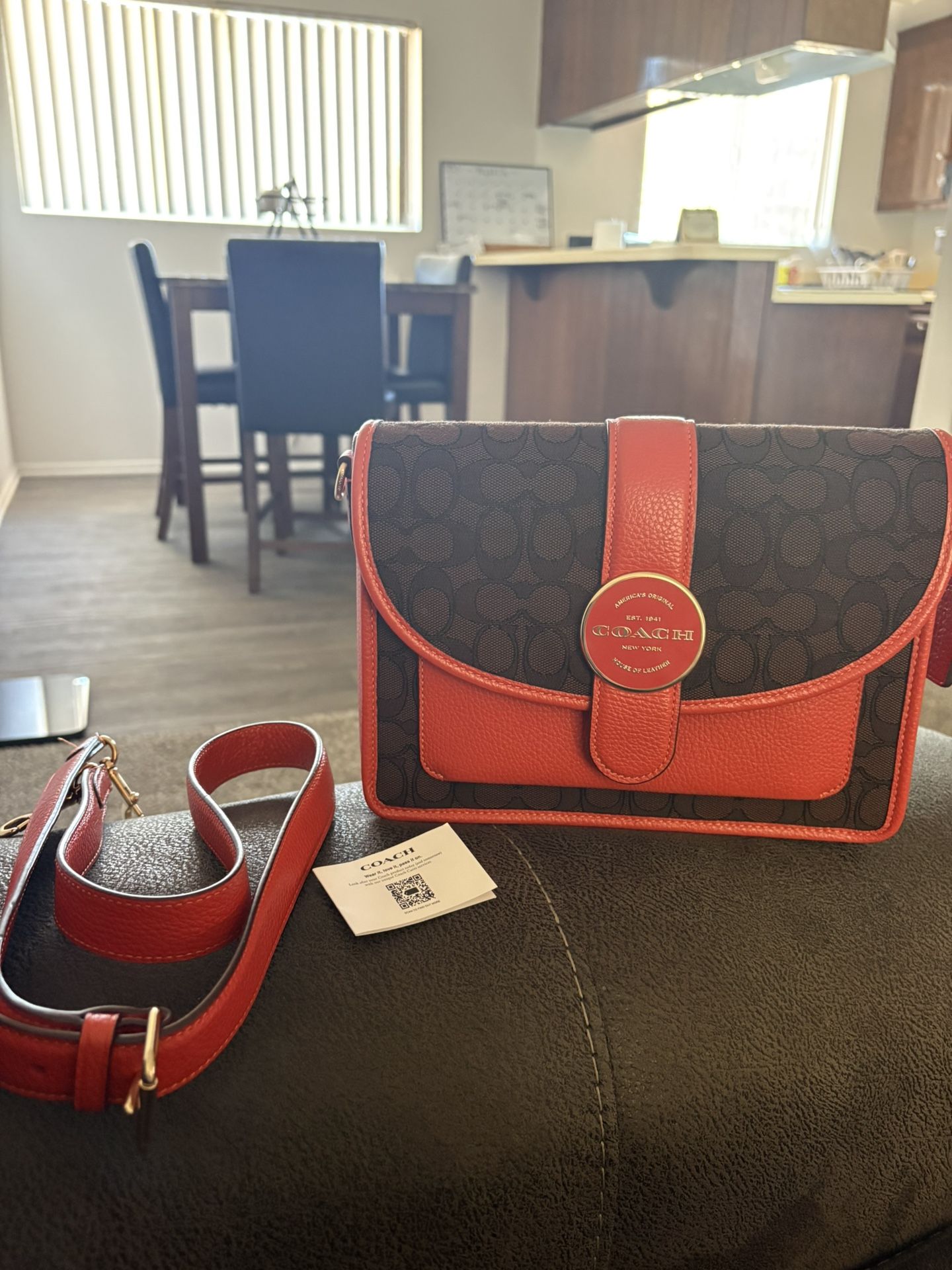 *Authenticity badge #: NºF2291-C8307 - front snap closure - long slip pocket on the back of the bag - outside slip pocket area once you open the flap - comes with a detachable, adjustable crossbody strap ~ measurements: 10” in width and 7.5” in length
