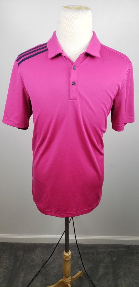 adidas Golf Mens Medium Pink/Red Striped Polo Short Sleeve Casual Shirt