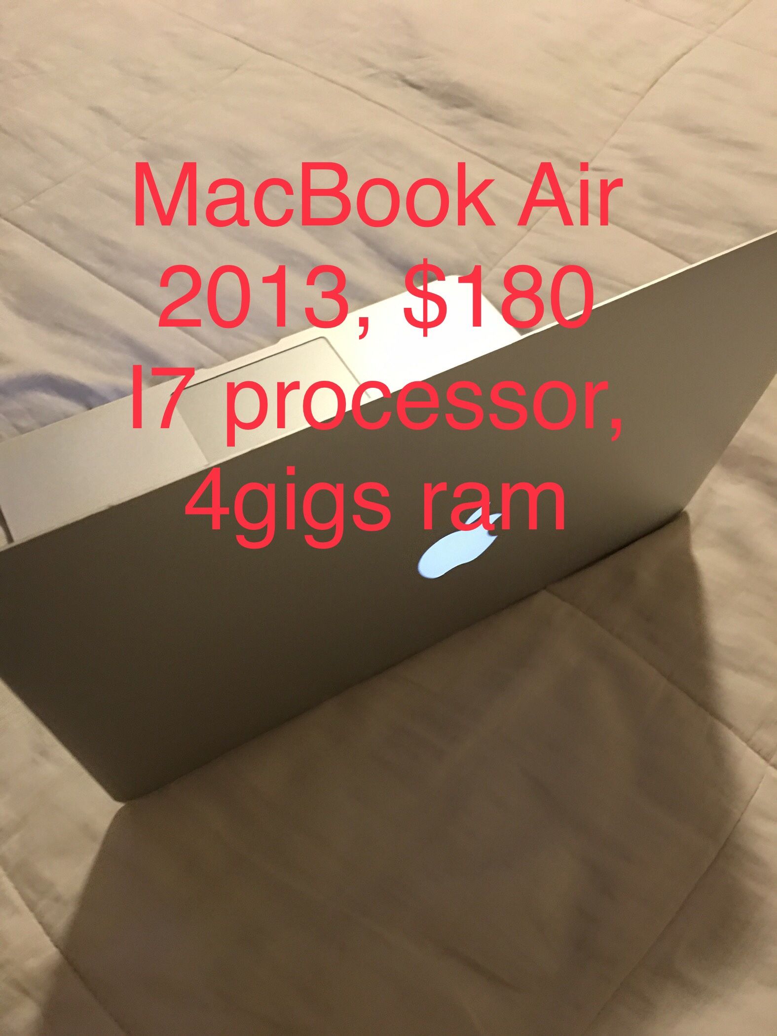 Someone sold me a broken MacBook Air, i7 processor and 4 gigs of Ram. It needs a hard reset because some pop up site keeps opening. Seems like a software issue, probably needs a hard reset. The screen also needs a little tightening. I paid $350, my loss is your gain. Asking $100.