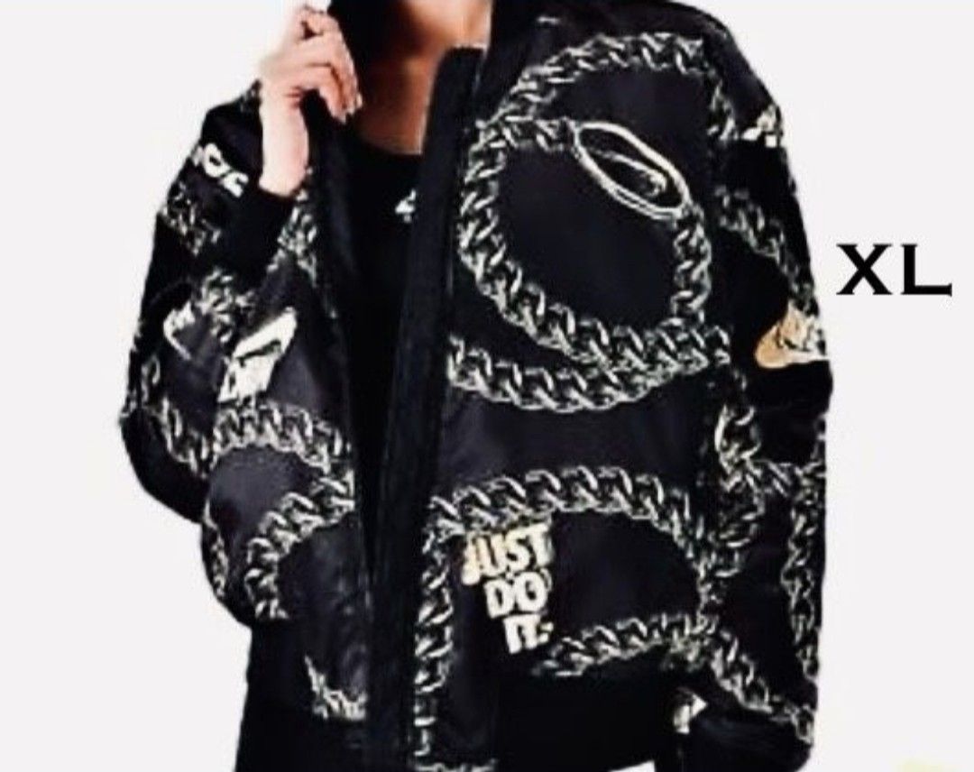 Brand new with Tags! Size XL Black Nike Gold Chain Logo Bomber Jacket Orginally $130 Amazing Quality🔥 Looks amazing on men and women fits both XL the same
