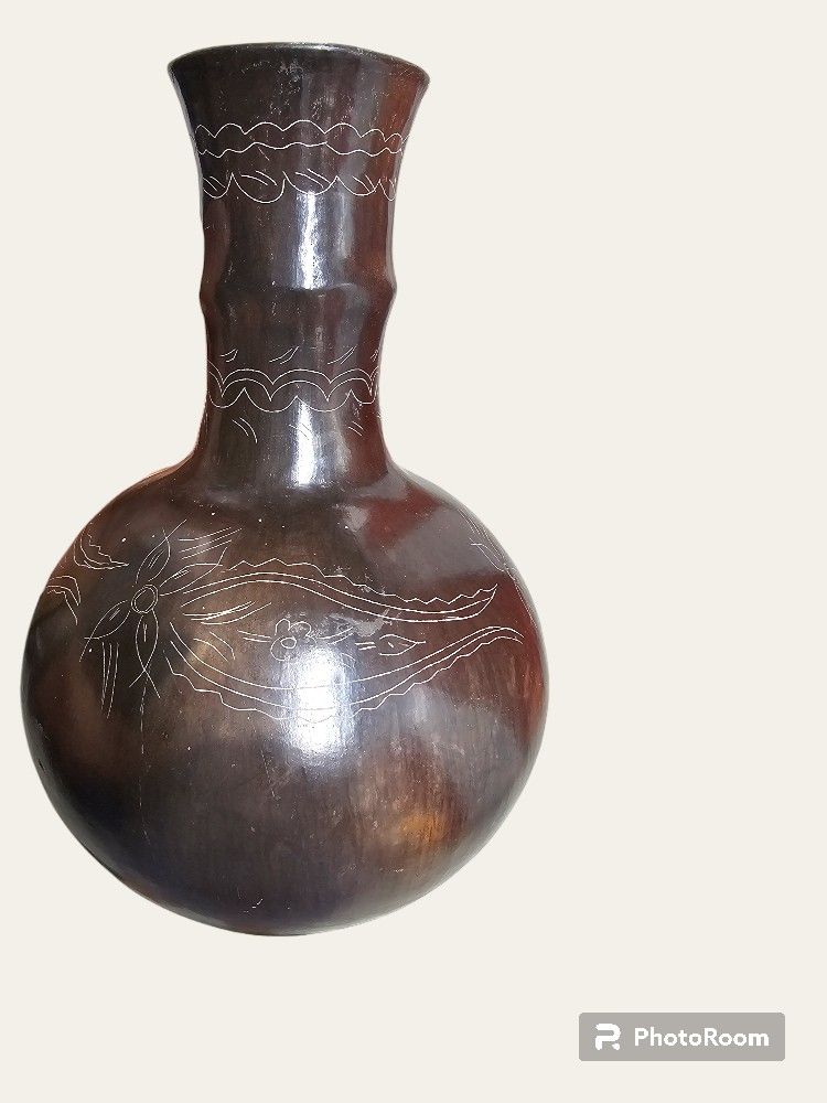 Late 1990s hand made and burnished can be use as vase or bottle