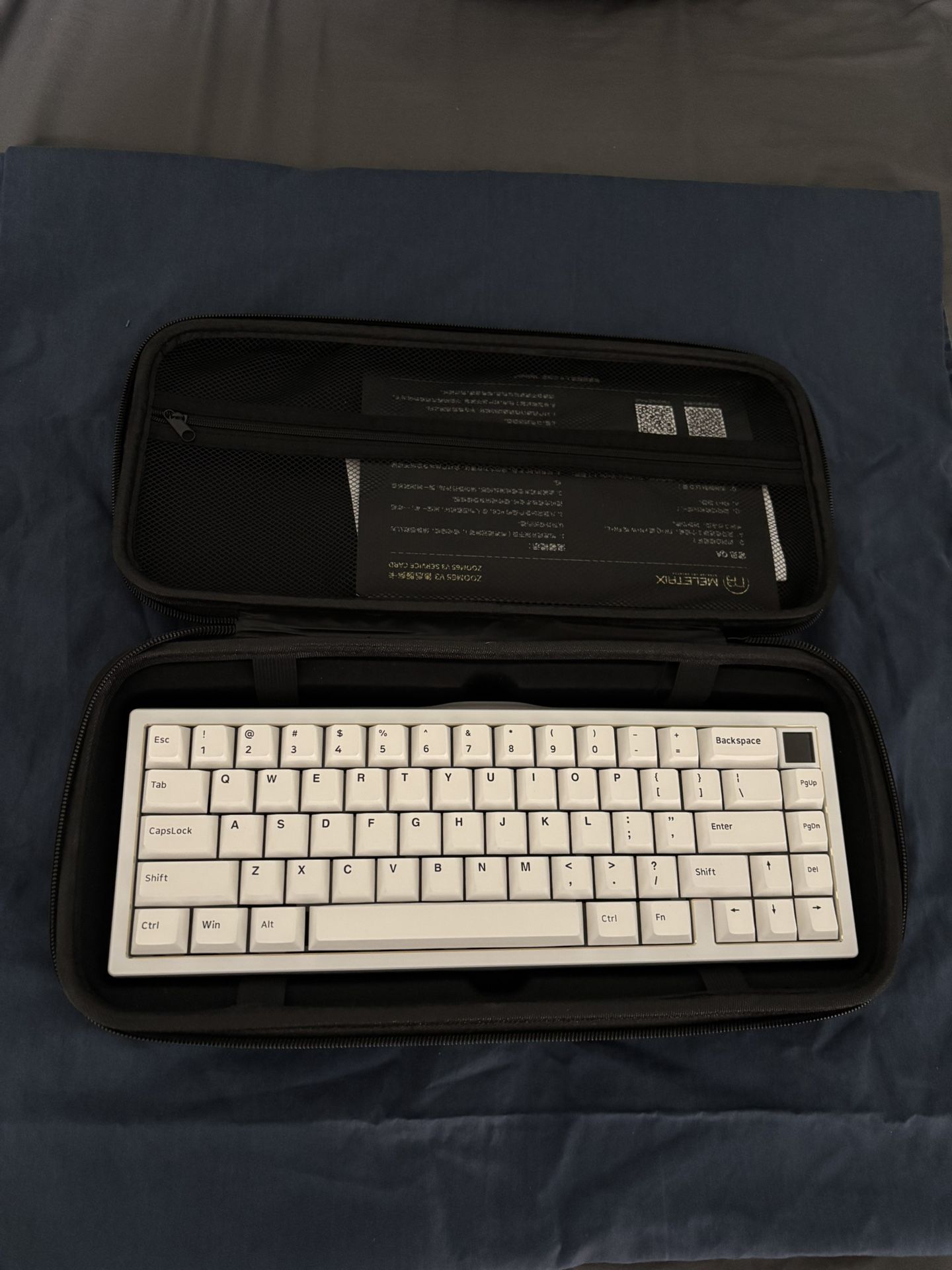 Built with silent linear switches. Brand new white PBT keycaps. Lubed Stabilizers. Comes with Original Case and a USB C cable.