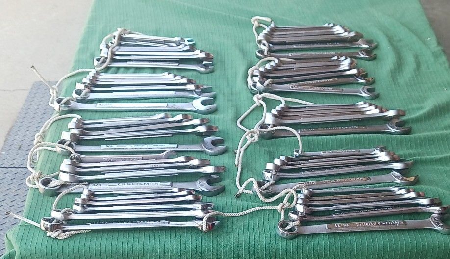 Selling my craftsman wrenches. Selling as at set. Good to like new condition. I have a total of 10 sets, 7 are standard and 3 are metric. Each set comes as follows: Standard $3 each piece includes one of each: -3/4 -11/16 -5/8 -9/16 -1/2 -7/16 -3/8 Metric $3 each piece includes one of each: -16 mm -15 mm -14 mm -13 mm -12 mm -11 mm -10 mm -9 mm -8 mm -7 mm