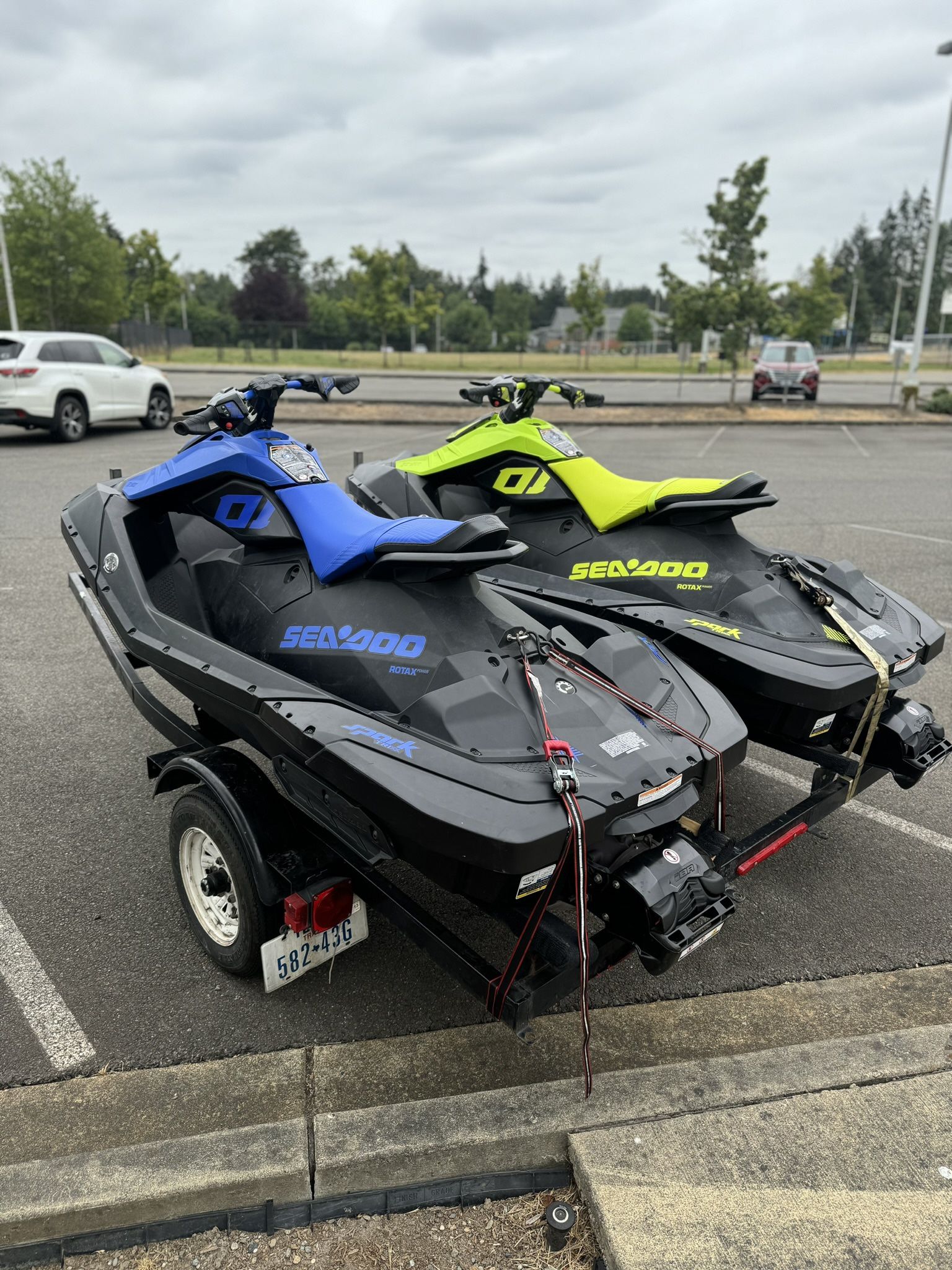 Up for sale are like new 2023 Seadoo Spark Trix jetskis, TITLE IN HAND for both jetskis, 33 hours on blue one, 54 hours on green one, come with trailer, asking $18,500 Thanks!