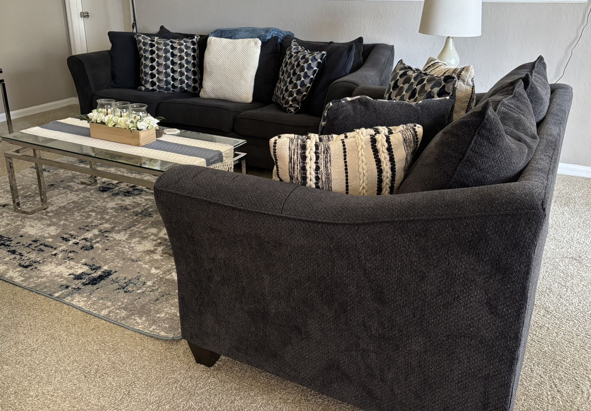 Pull out bed sofa and matching loveseat, includes all decorative pillows. Mattress is a full in wonderful condition but couch and loveseat is in used conditions. Asking for $500 OBO