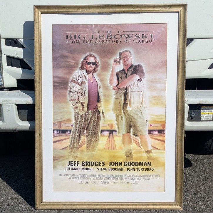 frame is about 41" tall by 31", poster is around 34" x 24". the backing paper on the frame back is torn as shown, but poster itself is not torn. originally made by allposters. plastic, not glass. I can throw in an extra DVD of the movie too but the DVD is not original retail, it's like a swap meet version. for fans of coen brothers Los Angeles Hollywood film 1990s 2000s quentin Tarantino VHS Blu ray movie 4k collection film makers wall art, special edition decor and movie theater design collectors