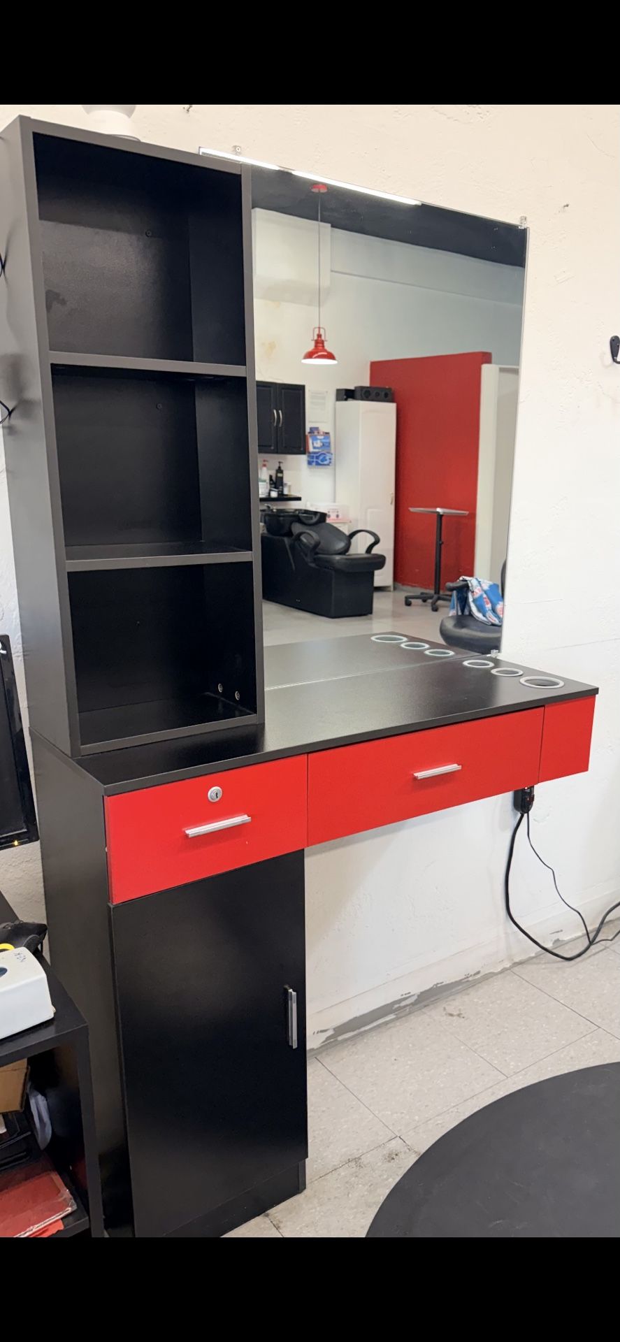 Salon Station with Mirror & Storage — Great Condition