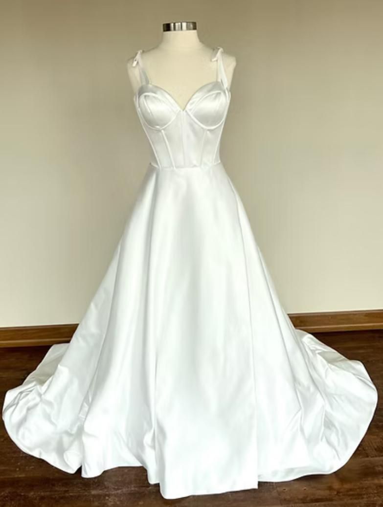 Elegant Wedding Dresses Spaghetti Straps Satin A Line White Bridal Gown
