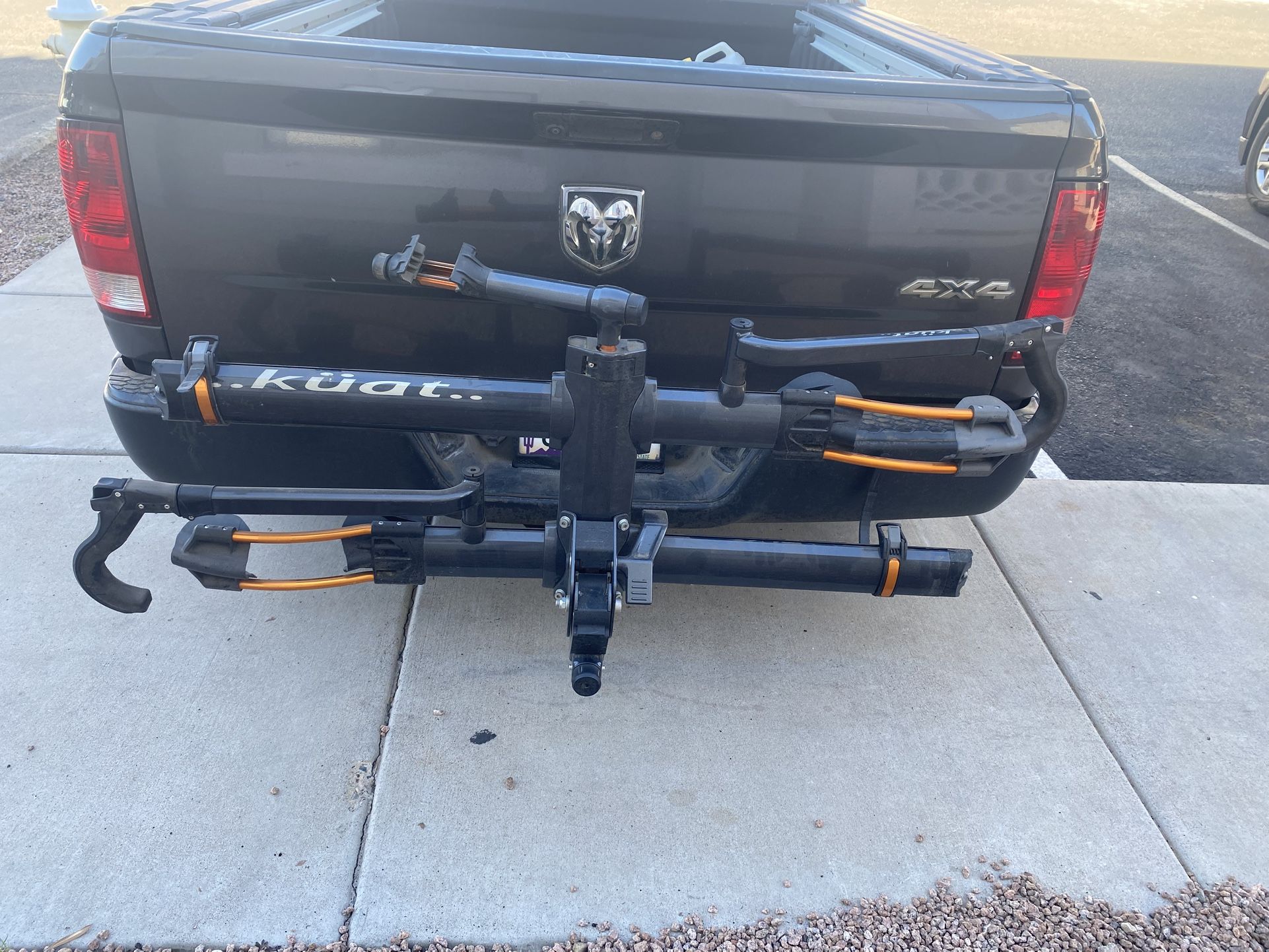 Holds two bikes. Heavy duty for e bikes. Repair rack and locking cables. 550$ used once and has been in storage.