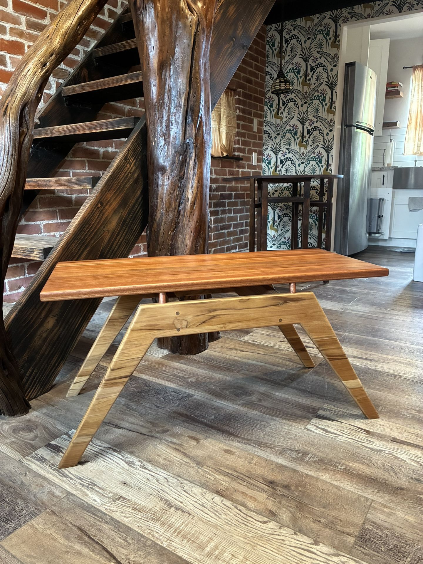 36” x 16” This stunning handcrafted mcm style coffee table is available! Sleek legs, metal accents and beautiful teak wood! Message to claim and schedule delivery! World market , all modern , joss and main , Anthropologie, urban outfitters , west elm , Article , crate and barrel , pottery barn , Serena and lily , restoration hardware , Ethan Allen , West elm , arhaus , all modern, room and board mid century modern , bohemian , minimalist , maximalist , opal house , cb2 wood , vintage rattan boho bamboo wicker Midcentury mcm mid century