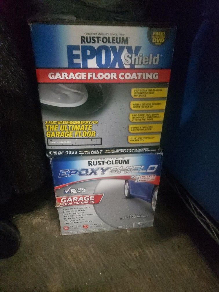 Up for sale is a beautiful new rust oleum epoxy shield garage floor coating in gray..