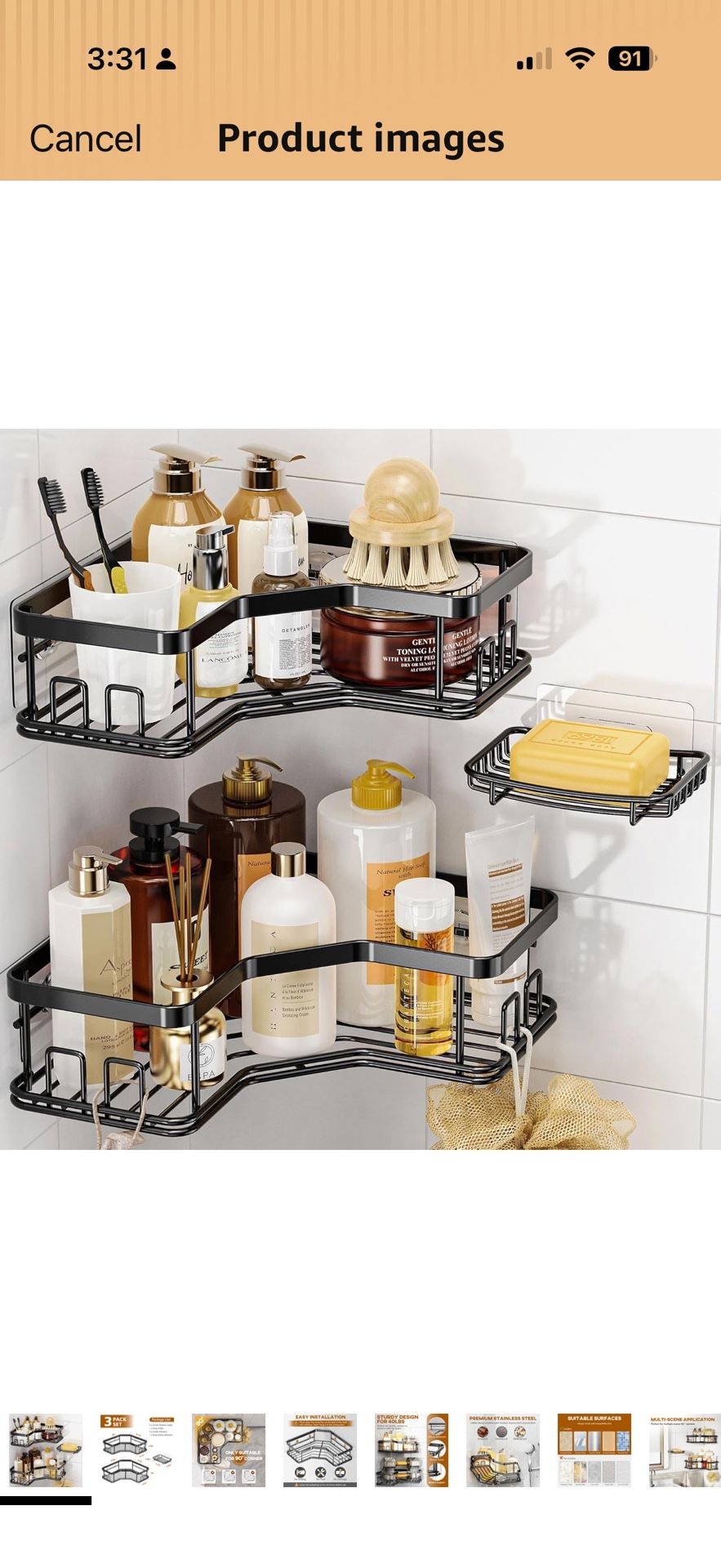 Corner Shower Caddy: 3 pack space-saving shower caddy makes the most of 90° corner space. It holds large shampoo bottles without taking up too much space. Features 8 hooks for brushes, loofahs, towels, razors, plus a soap holder for soap or small items, definitely helps with organization in the shower Sturdy Design for 40 LBS: Our clear adhesive uses advanced tech to hold up to 40 lbs without slipping. Residue-free - leaves no marks or sticky goo on walls. Perfect for family, renters or anyone redoing space! Easily remove it cleanly, just heat it with hair dryer to peel off intact Easy Installation: No drilling tools needed! The shower organizer uses strong adhesive for true tool-free setup that won't damage wall. Just peel, stick firmly to dry, smooth walls, hang the shower shelves for inside shower, and let cure for 24 hours, plus 2 spare shelf adhesives included for repositioning or replacements Premium Stainless Steel: Built with quality stainless steel that's waterproof, rustproof, and easy to use in humid bathroom. Just a quick, easy wipe-down keeps shower storage rack clean. The hollow design prevents water buildup, makes our bath look cleaner and organized Versatile Application: Forget space limits! Perfect for humid bathroom, bathtubs, RV sink areas, kitchen cleaning tools, laundry room and more. Just stick adhesive to tiles, tempered glass, fiberglass, wood, or any smooth surface(not for wallpaper, painted, lime, rough, concrete walls or textured surfaces—always check wall compatibility first)