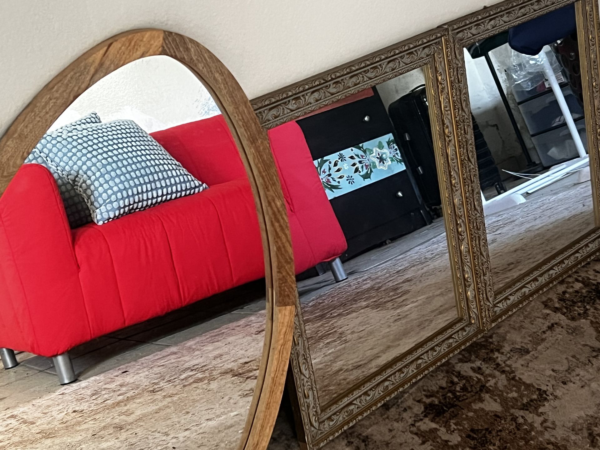 3 accents mirrors plus hanging kit 30 for the bundle or 15 each. Two are square and one is oval shaped