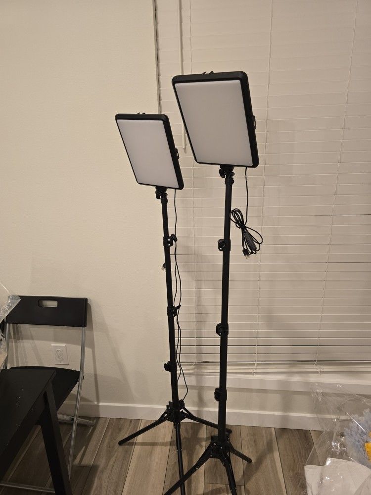 2-Pack LED Video Light Kit, NiceVeedi Studio Light, 2(contact info removed)K Dimmable Photography Lighting Kit with Tripod Stand, 73" Stream Light for Video Recording, Game Streaming, YouTube 【LIGHT PANEL & POWER CABLE】The 10” (25.5 cm) x 7.8” (19.8 cm) LED light panel with compact design allows you to carry around conveniently with durable storage bag. Thickened light shell works a diffusion, making the lighting more softer. Ideal USB port for powering the device with 5V, 2A DC wall charger(not include) or power bank. Comes with USB-C adapters that allows you to power the device with cell phone or laptop.
