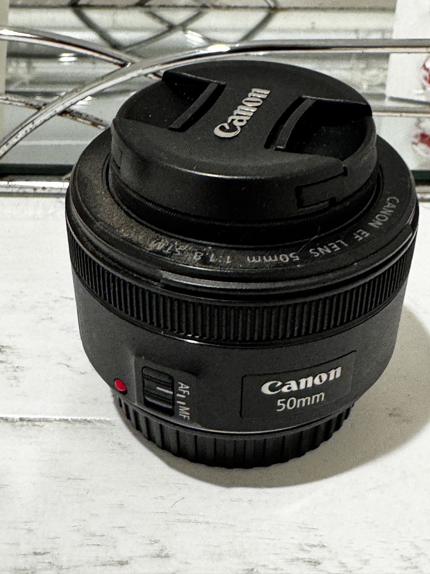 Selling my Canon EF 50mm f/1.8 STM lens. It’s in excellent condition, used very lightly, and always stored with lens caps. ✅ Lens Details • Fast and quiet STM autofocus • Clean glass, no scratches or fungus • AF/MF switch works perfectly • Includes front and rear Canon caps • Compatible with all Canon DSLR EF-mount cameras • Great for portraits, low light, and product photography
