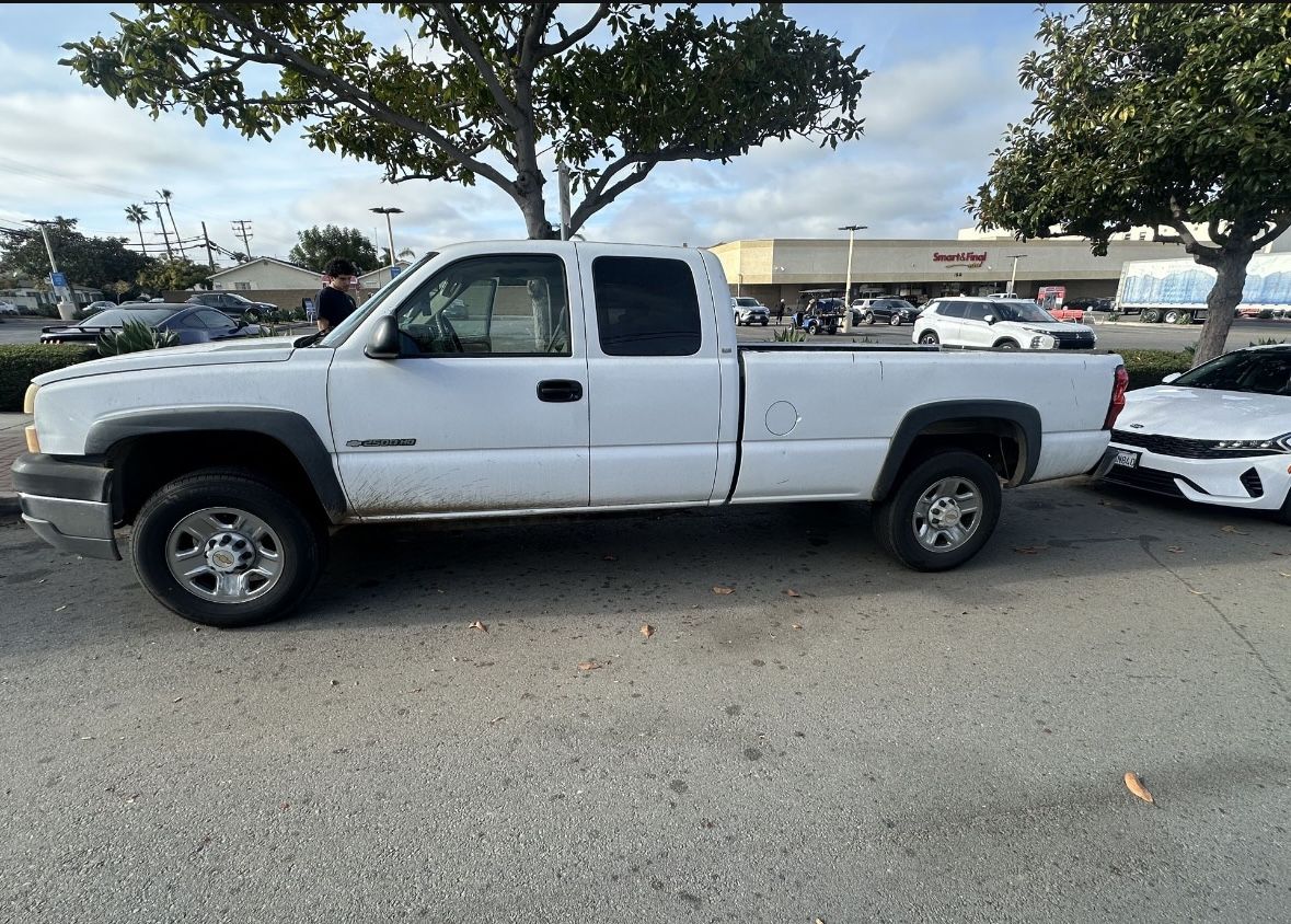 2004 Chevy Silverado 2500HD Automatic transmission 168k miles V8 6.0L gas engine Current tags Clean title I’m second owner Runs great Extended Cab Long bed Seats 6 New tires Great work truck Vinyl flooring Tow hitch Does have some side damage on rear quarter panel Tear on driver seat