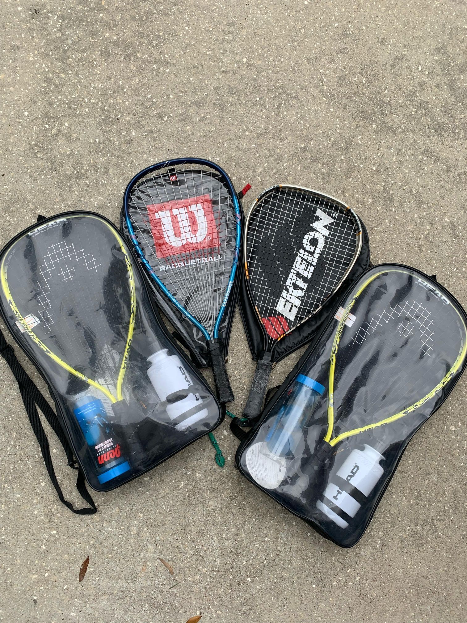 π₯ Racquetball Set Racquetball set, perfect for beginners, casual play, or anyone wanting to get active. All gear has been well taken care of and is ready to use. β 4 quality racquets (Head, Wilson & Ektelon) β 3 carrying bags included β Water bottles + Penn balls included β Perfect for gym courts or family play Everything is clean and in good condition. Great value for a complete set!