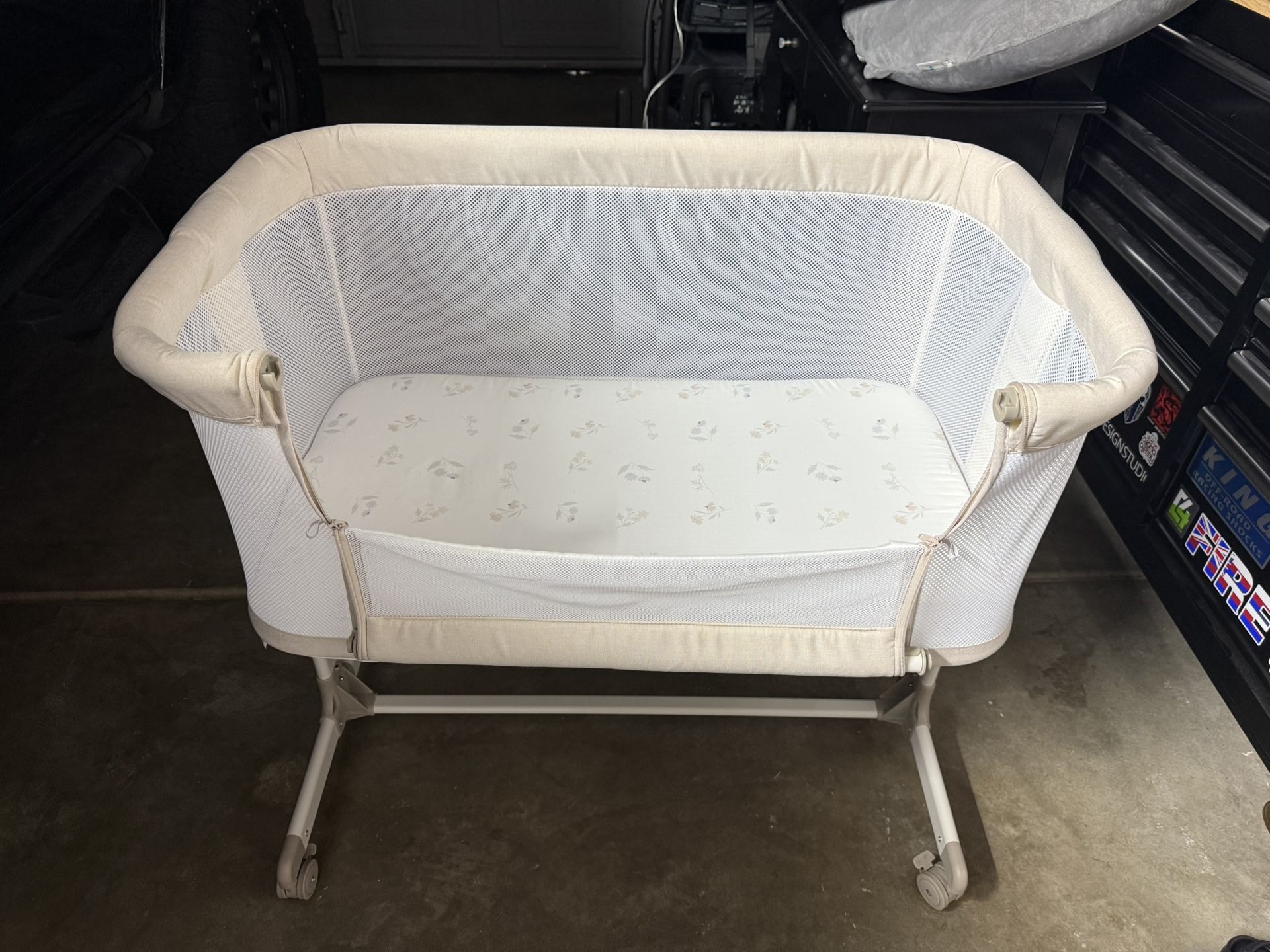-$100 on Amazon (see attached pic) -Used for 1 infant, 4 months old -Sleeping pad is still sturdy, clean, no stains