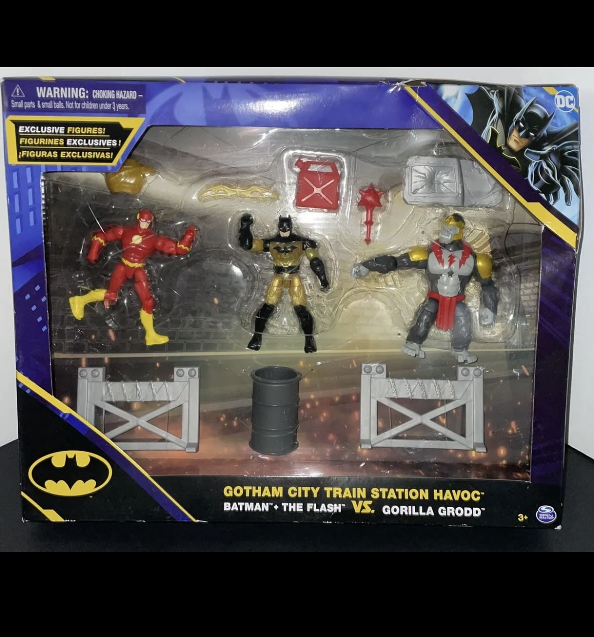 Batman Flash Gorilla Grodd GOTHAM CITY TRAIN STATION HAVOC Figure Spinmaster NEW