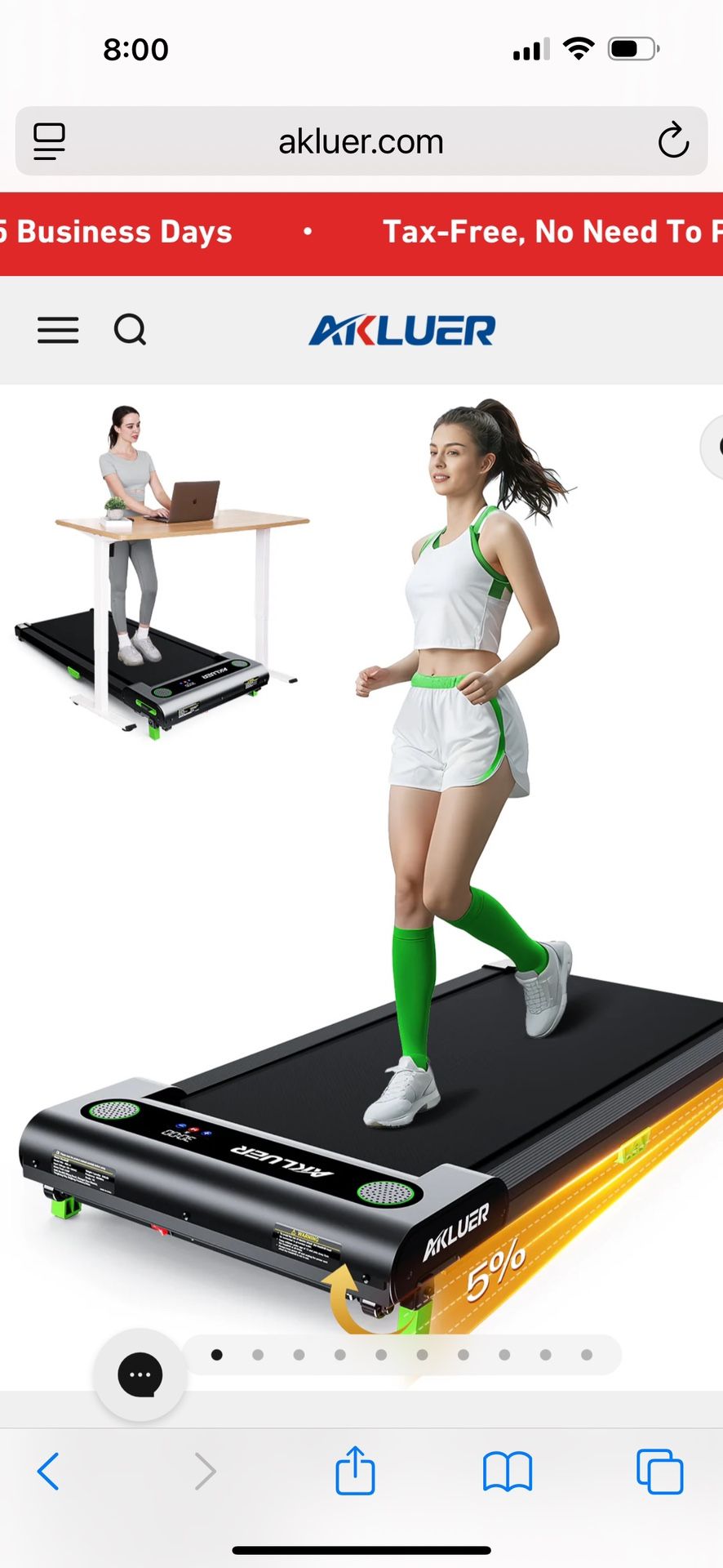 AKLUER TREADMILL 480 L-A Under desk model Alloy steel, 2.5 HP High performance motor, 0,6-4 MPH, 42.9x19.7x3.85 inch, Max cap 330 Lbs, net weight 33.5 lbs, manual incline 2.2 degrees, 100-120 V AC, FCC UL Certified New in box down from $165.00 Pick up by appointment in Chandler Az Item#2001