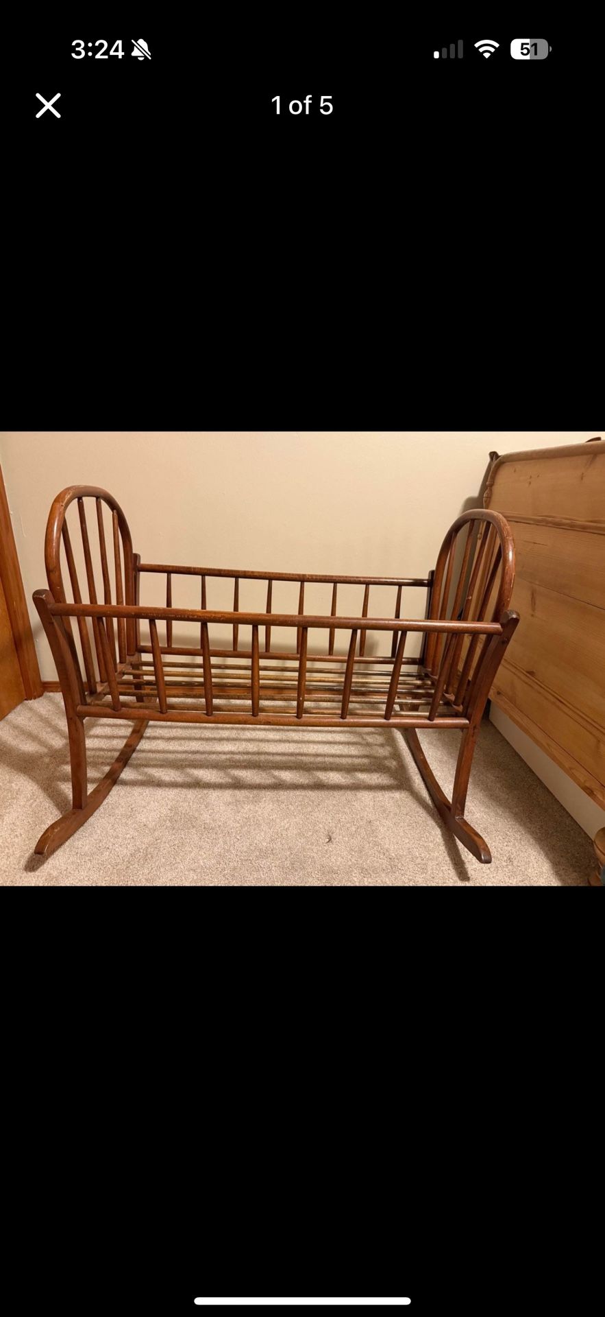 1930s Bentwood Baby Cradle bed in fantastic condition! #mcm #bentwood #midcentury #midcenturymodern #antiquebabycrib #antiquebabybed