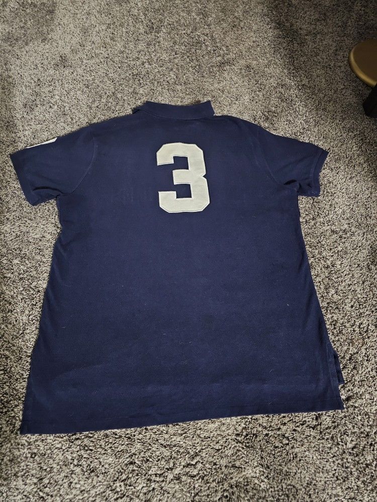 Good condition polo shirt navy blue color size XL custom fit shirt I'm 200 pounds and fits me Good not tight so you can get an idea asking Good size L would be perfect asking $80 serious inquiries only please thank you