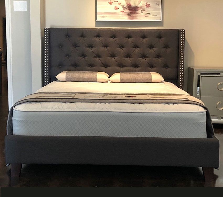Brand New King Size Dark Grey Linen Platform Bed Frame With New Mattress/Fast Delivery