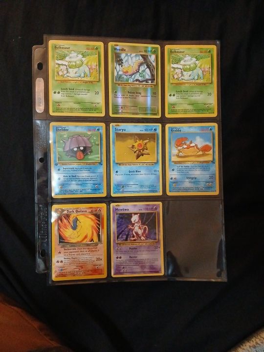 Illustrator Mitsuhiro Arita helped pioneer Pokemon with the 1st edition Pokémon TCG art. From Bulbasaur, Weedle, Shellder 1st Edition & Fossil Set, Krabby to Dark Quilava! Middle cards are from 2016: Weedle, Staryu, Mewtwo.