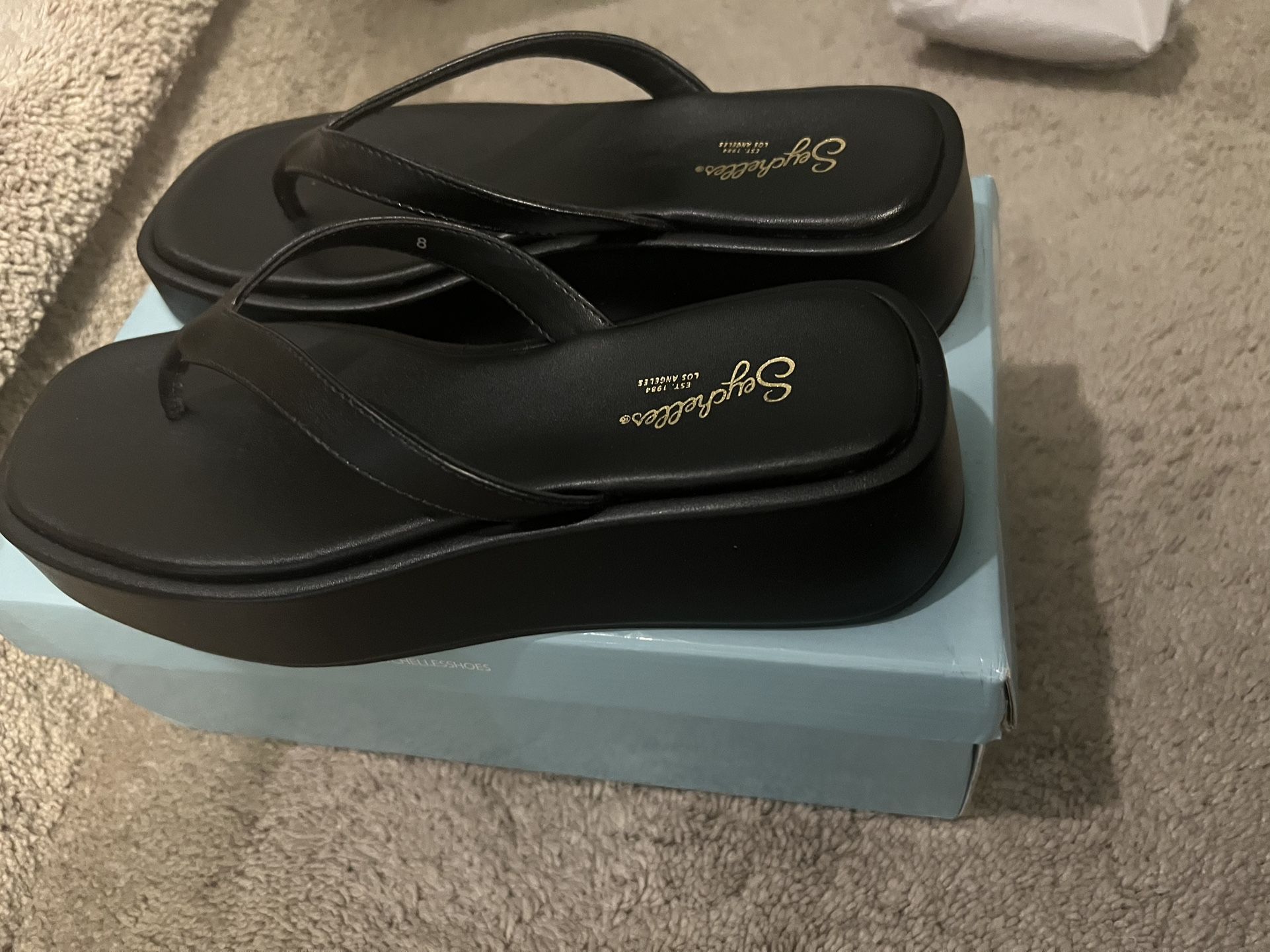 Seychelles black leather platform sandals Size 8 Great brand and comfortable. Asking $25 OBO