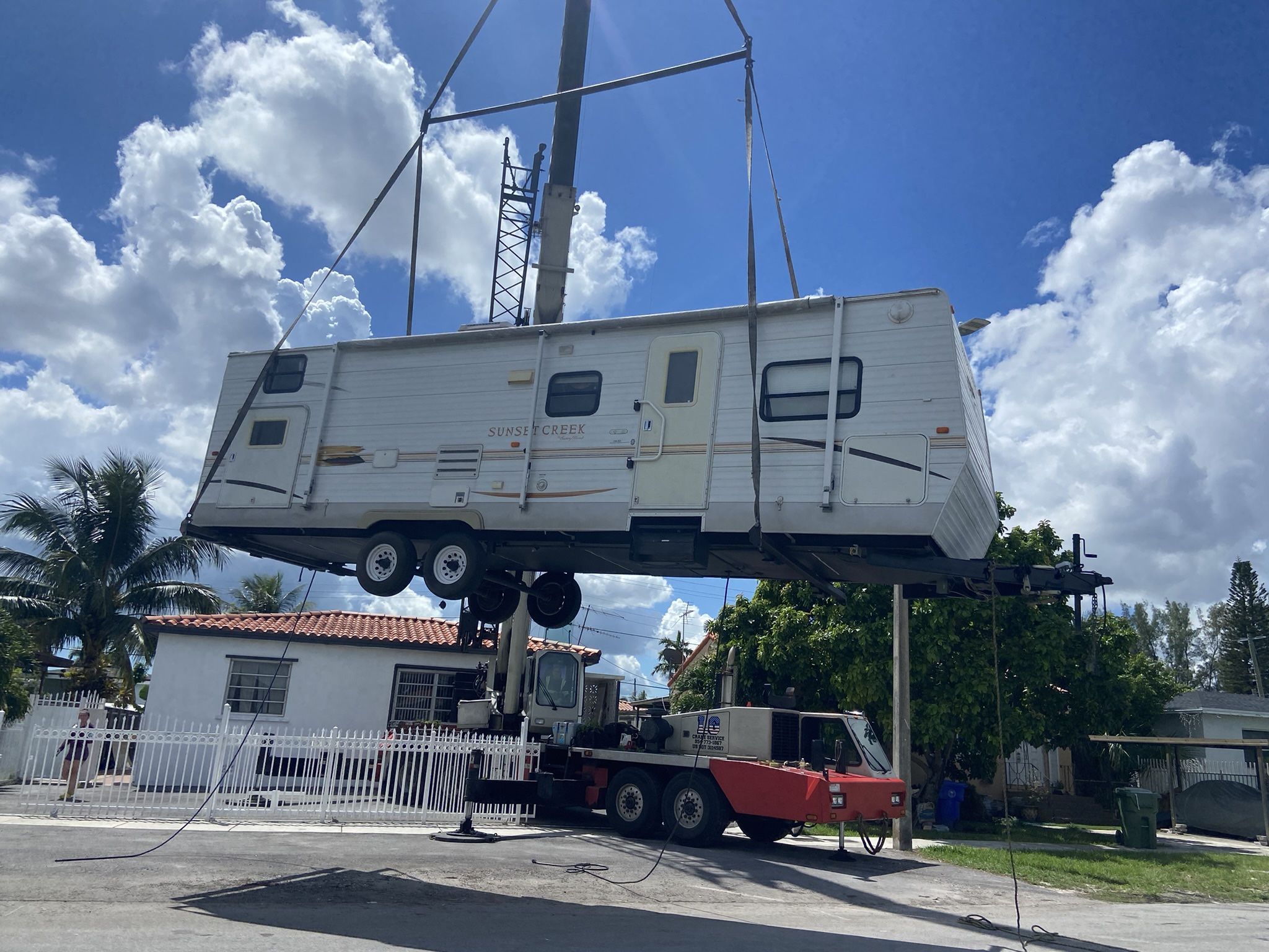 Rv Relocated , Movemo Casita De Patio Container Sheds Crane
