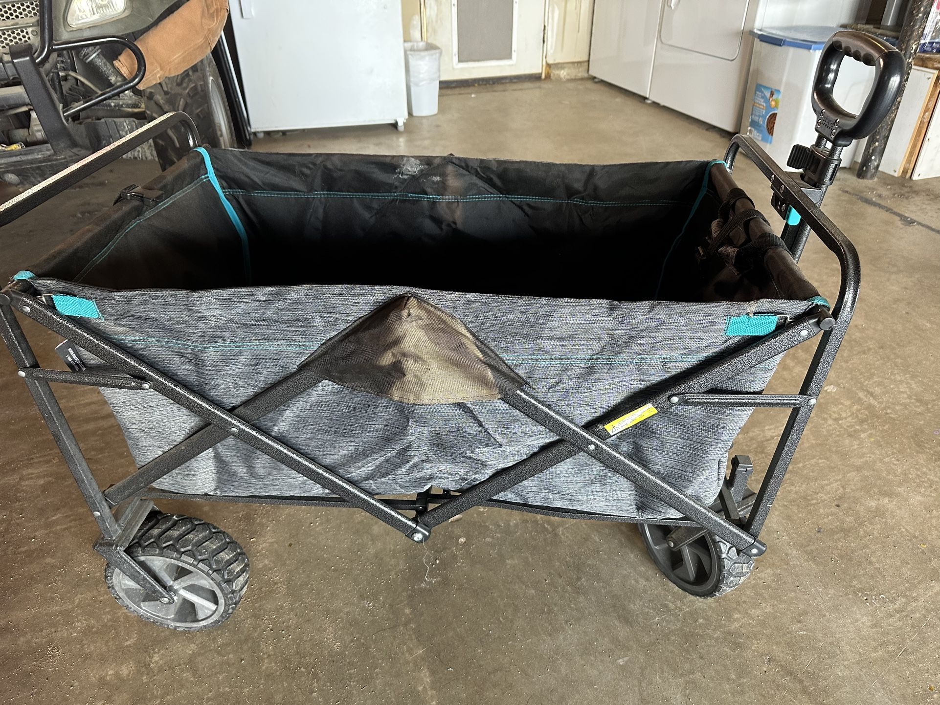 Needs a good clean got from Costco. Would be good for kids sporting events or daily use. Tons of life left the handle extends and wheels function as should open to offers need gone