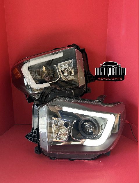 Set of headlights for a Toyota tundra black housing, clear projector amber w/DRL running daytime light 2014. 2015 2016. 2017. 2018. 2019. 2020 and 2021