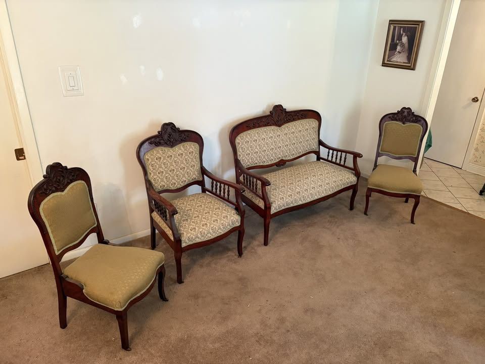 Victorian Rococo Revival Furniture Set Of Love Seat, Master Chair, Two Side Chairs