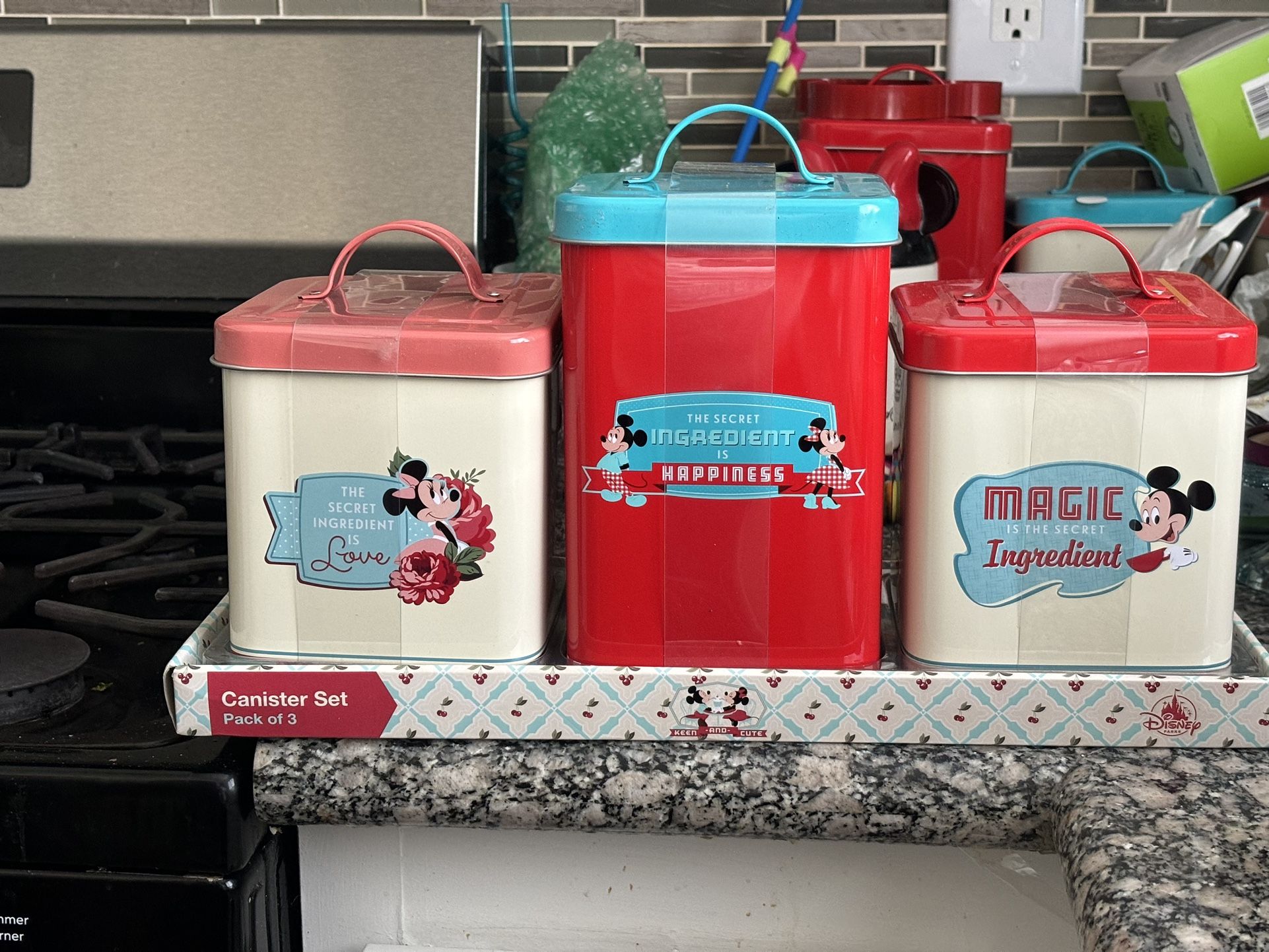 Not your average canisters‼️Brand new Never used in original package. Three metal retro/ Vintage ascetic canisters. These canisters in three different sizes will brighten up any space whether used as a trio or individually, they are sure to spark Joy with their bright colors and retro style cherries, flowers 🍒 and red gingham check trim. Shipping not available. Serious inquiries only please. Thanks for looking. 🙏🏽
