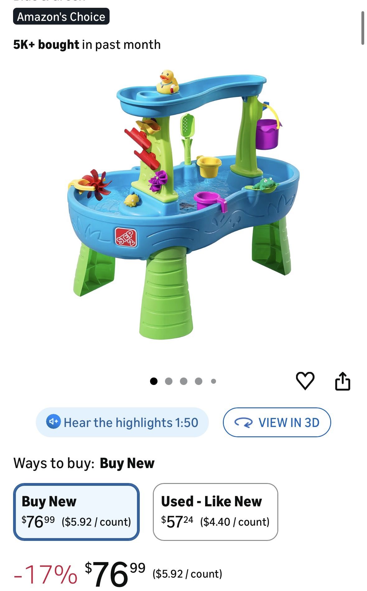 Brand new birthday gift in the box unused. We had a fear with our son coming out of hospital not to play outside in the water or Sand. We cannot return since it was gift. Tons of fun a kids can share and learn.