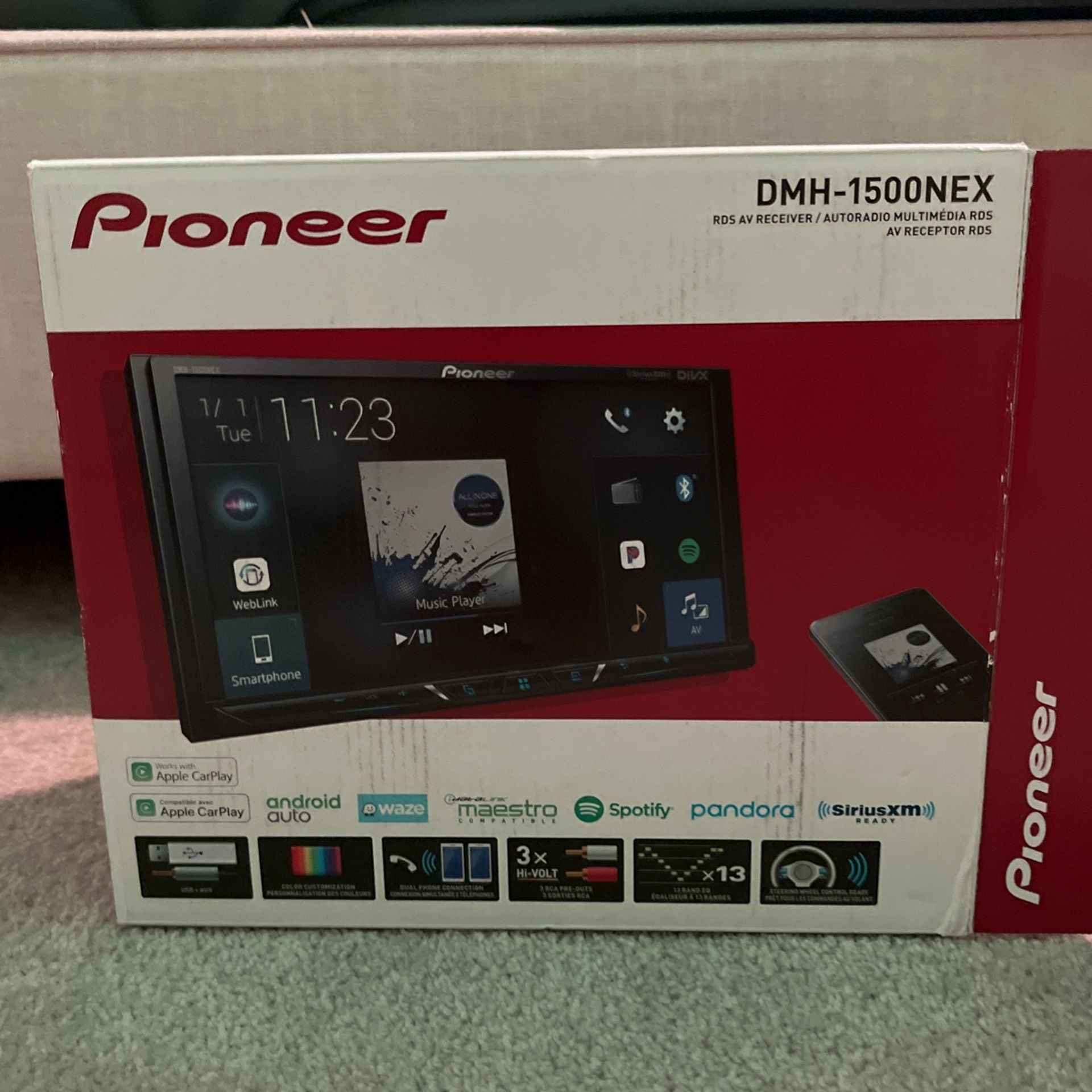 Never used, Works with Chrysler, Dodge, and jeep automobiles. Comes with adapter for other cars too. The adapter is 100 separate. The Pioneer is 300 separate