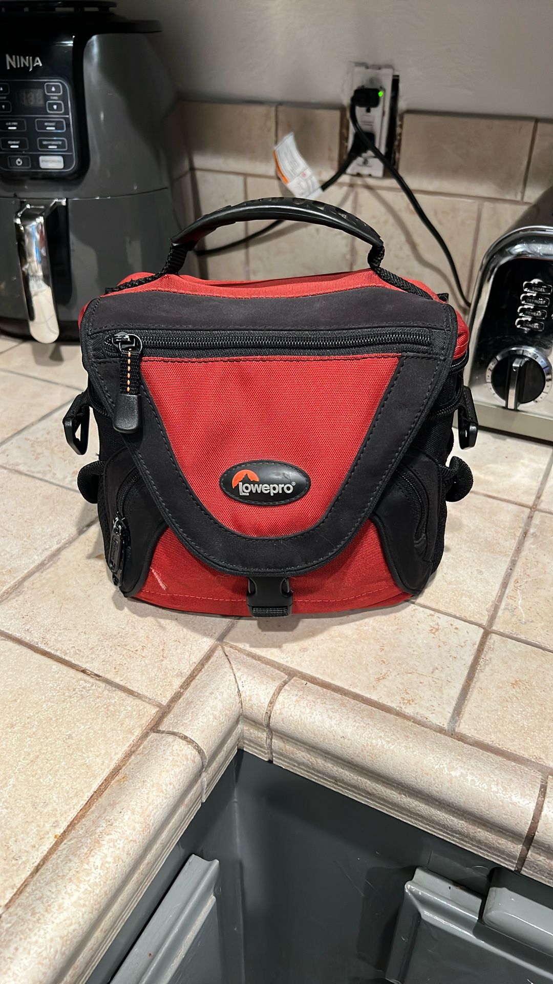 Selling my used camera bag. Some stains on the outside and inside. Built in rain fly, no strap.