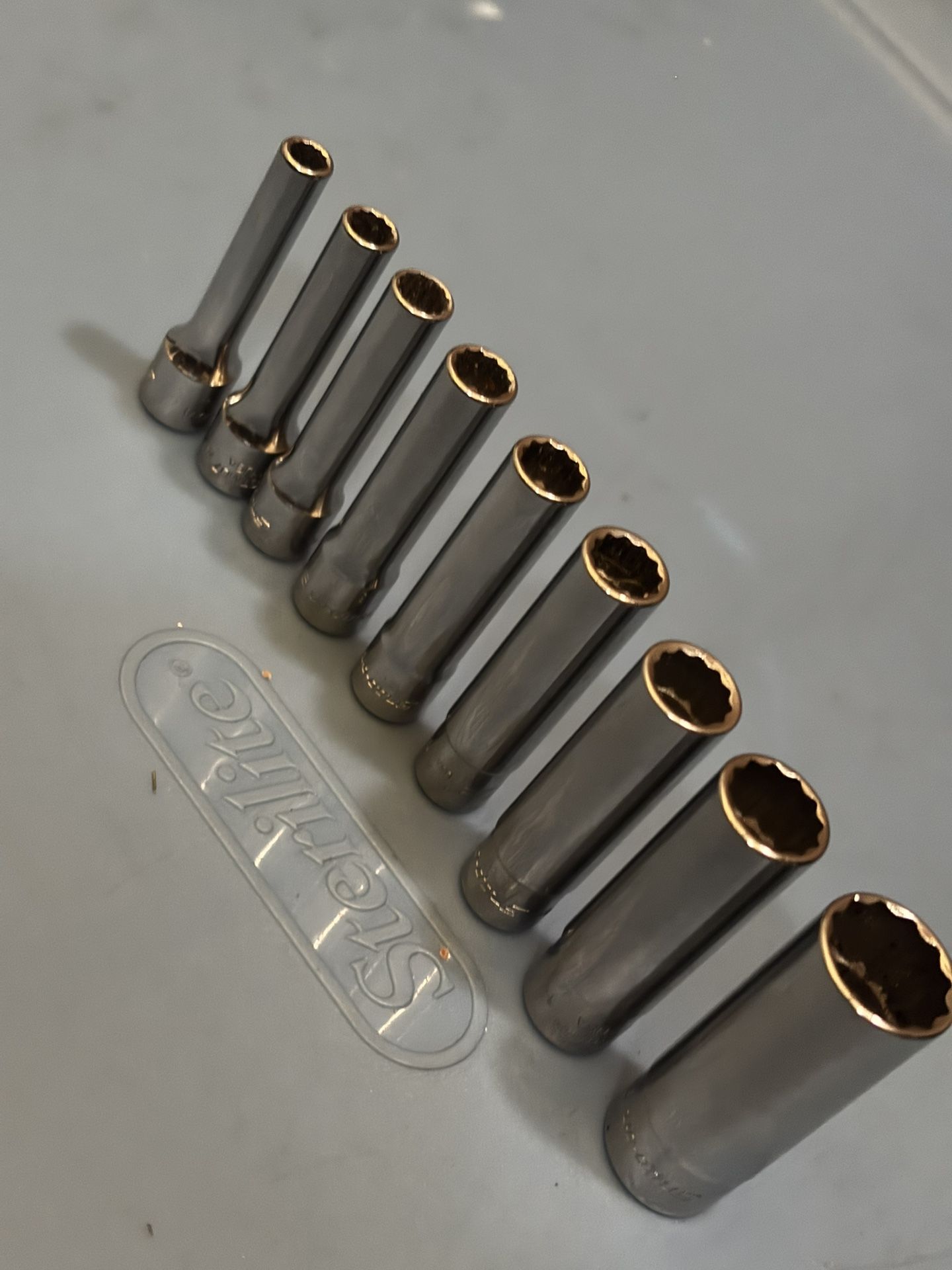 Snap-on Tools 9 pc 1/4" Drive 12-Point SAE Flank Drive® Deep Socket Set (3/16-9/16") (1/2" Socket missing) Never used $190 Check my other offers