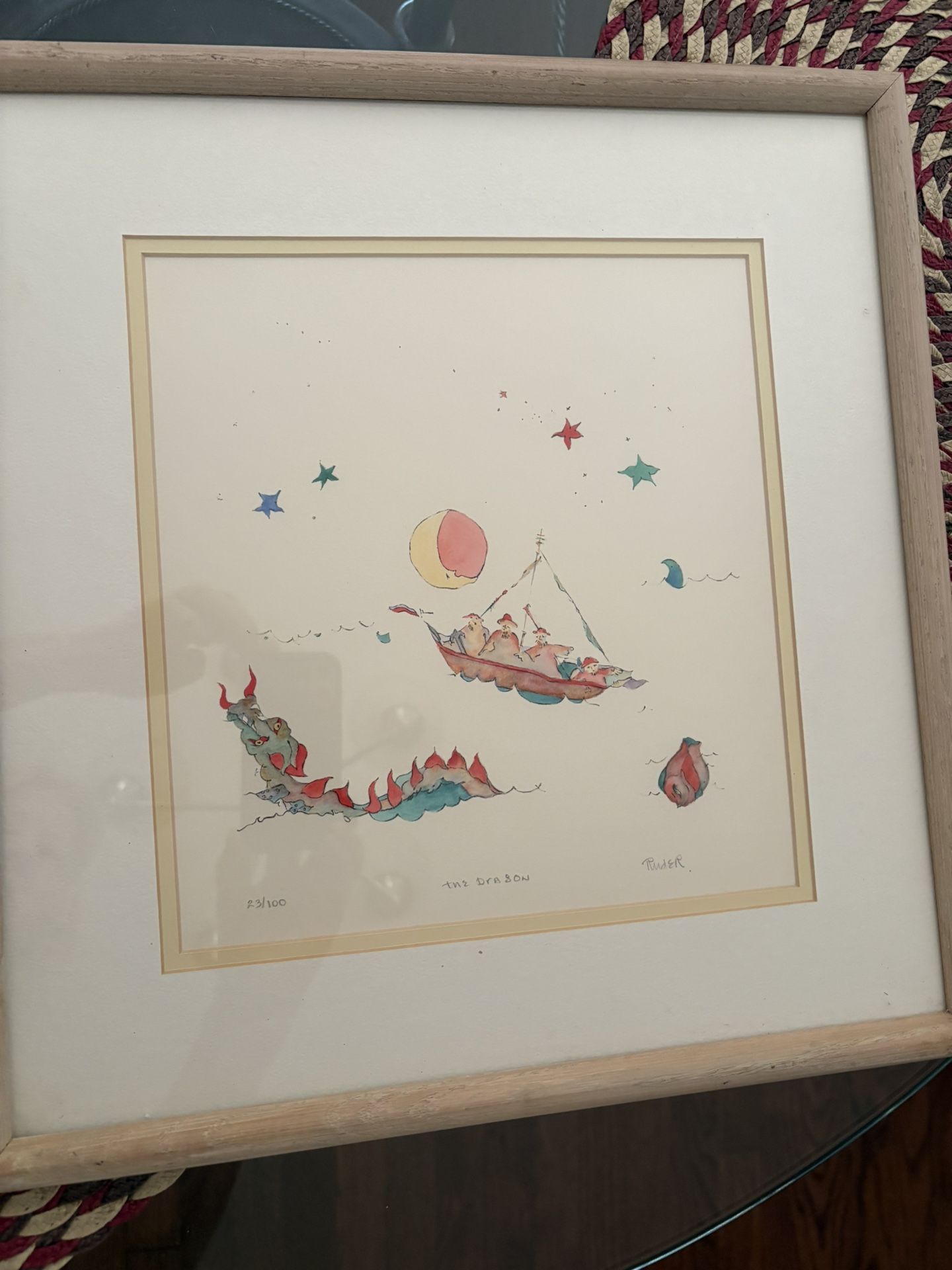 The Dragon signed print Samuel L. Ruder 23/100 16 1/2” x 15 3/4” doubled matted framed Contemporary folk art